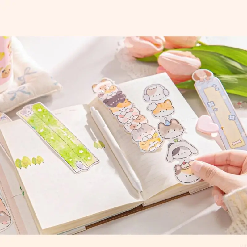 Cada hoja está elaborada con cartulina, lo que proporciona superficies lisas adecuadas para diversos proyectos creativos de diarios y álbumes de recortes.Gracias a sus diseños de dibujos animados y su durabilidad, estos marcapáginas de papel también se utilizan para papel decorativo de fondo de álbumes de recortes, notas de diario grabables, divisor de páginas de libros, etiquetas de embalaje y más.