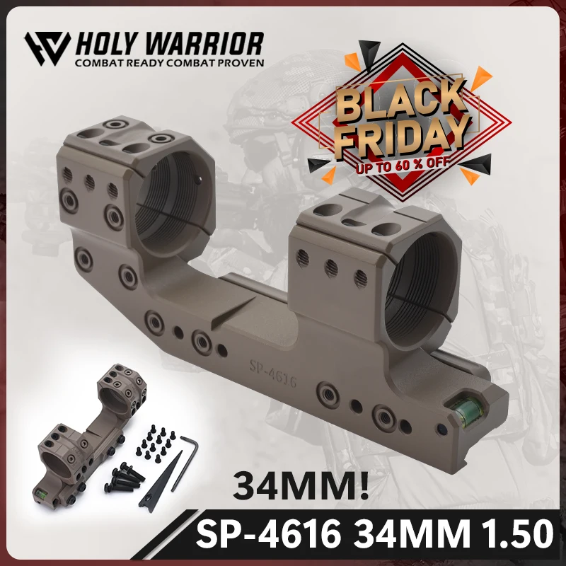 34mm SP-4616 sólido 0MIL 0MOA 34mm tubo mira telescópica 38mm altura 1,50 montaje de alcance con superficies para accesorios de alcance color FDE
