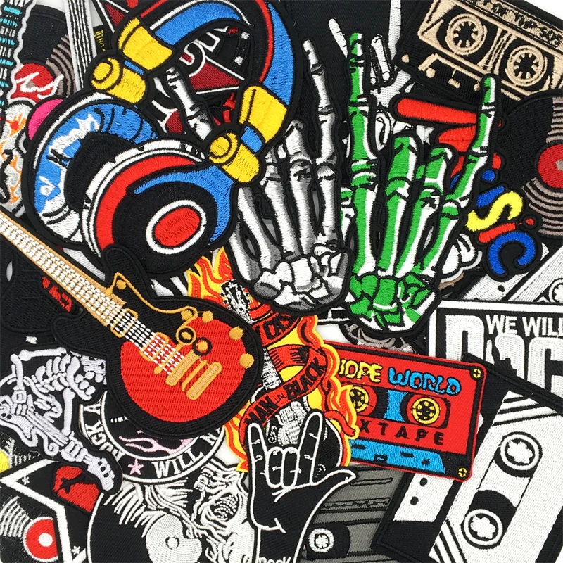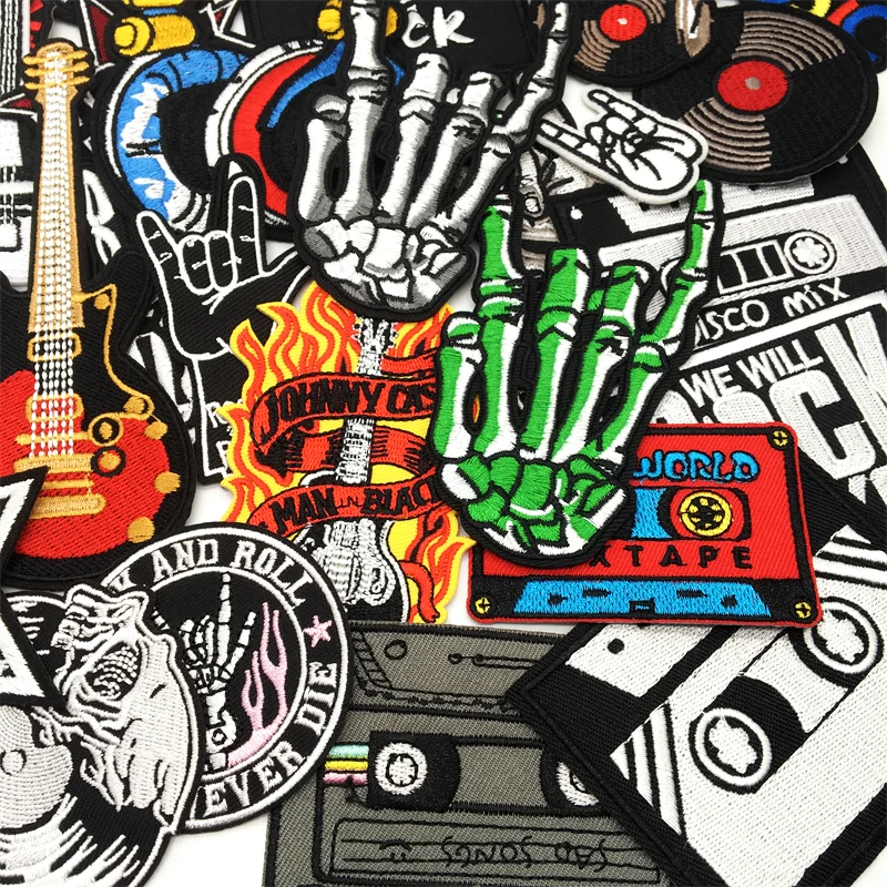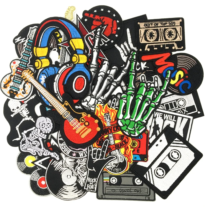 35 unids/lote de parches ROCK N ROLL para ropa, parches bordados, apliques a granel para ropa, chaqueta, pantalones vaqueros, accesorios de costura para planchar DIY