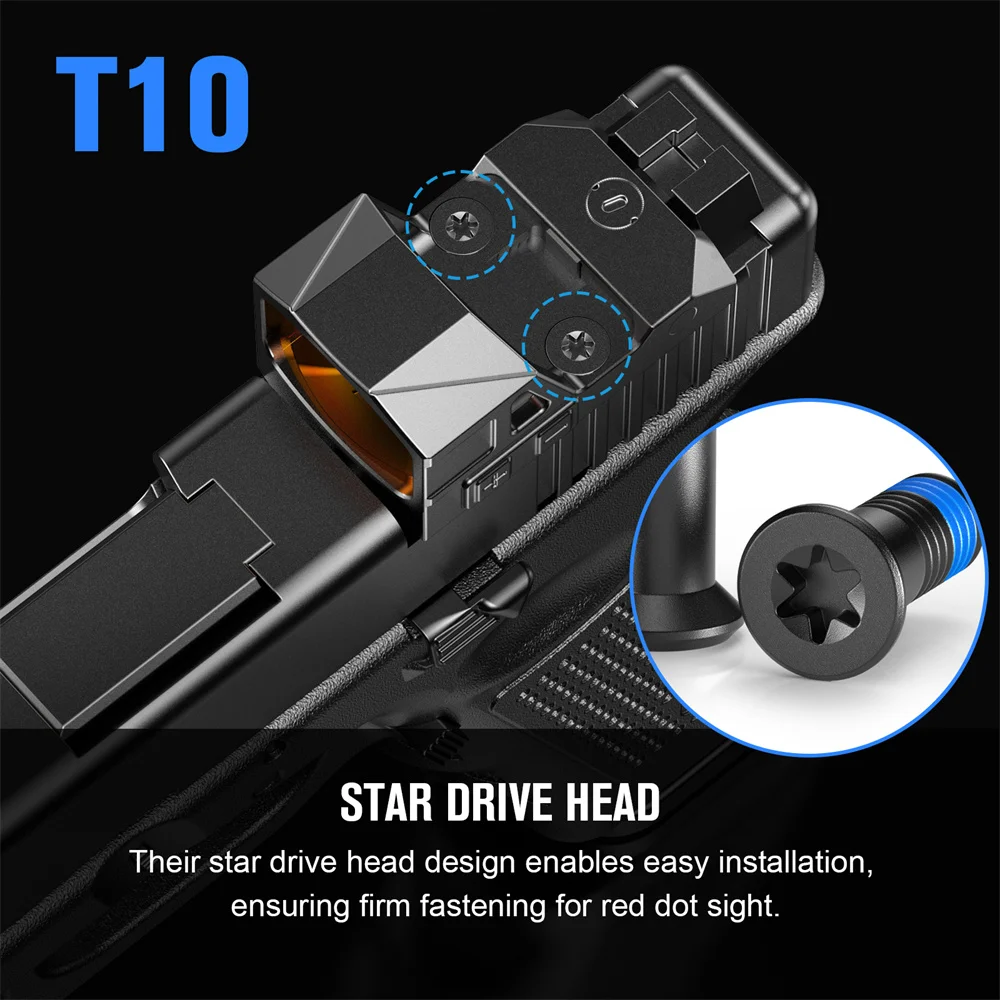 36 tornillos de punto rojo con cabeza T10 para montaje de óptica de punto rojo M4#6-32 tornillos con accesorios para pistola de caza con casillero de rosca azul