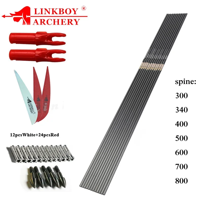36pcs Carbon Arrow Shaft ID6.2mm Spine300 - 800 Insert Nock Compound Bow Longbow Hunting Shooting Archery