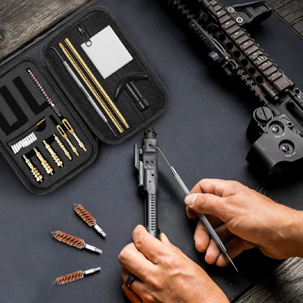 36 Uds Kit de limpieza de pistola Universal cepillos de limpieza de pistola de rifle 9mm.22.357.38.40.45 cepillos de bronce adaptadores Jag parches de limpieza de pistola