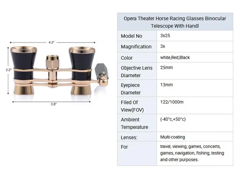 3x25 Coated Binoculars Brass Opera Theater Glasses Metal Body with Handle Multiple Colour Retro Design Ms Gift Binoculars