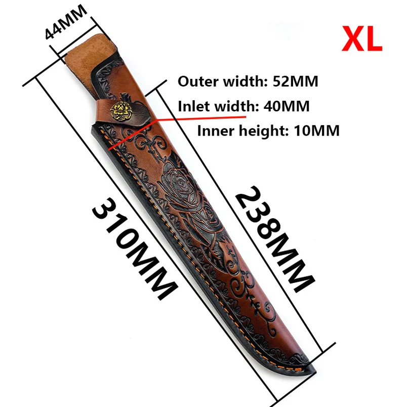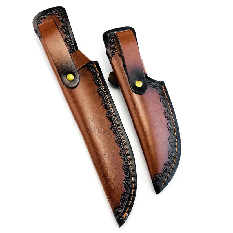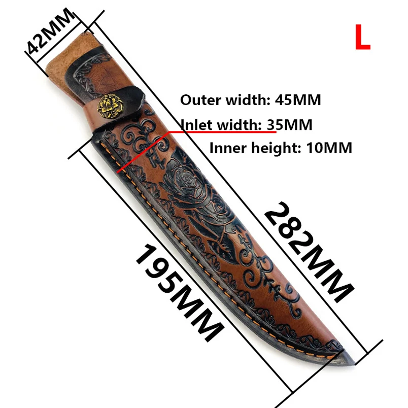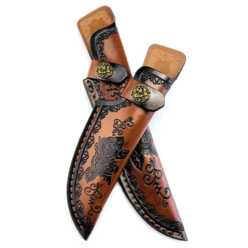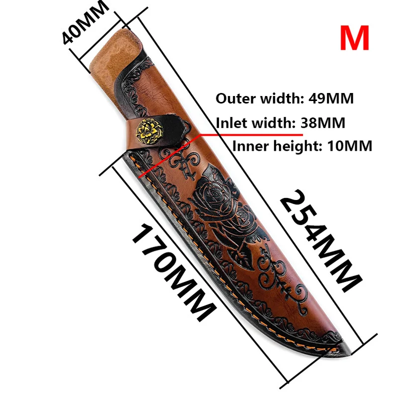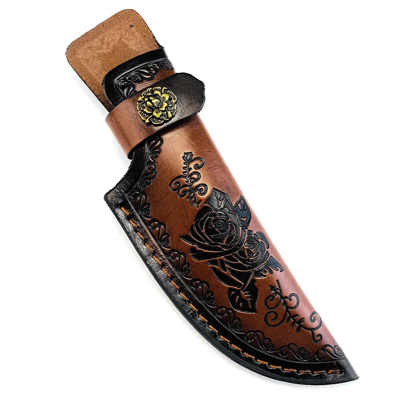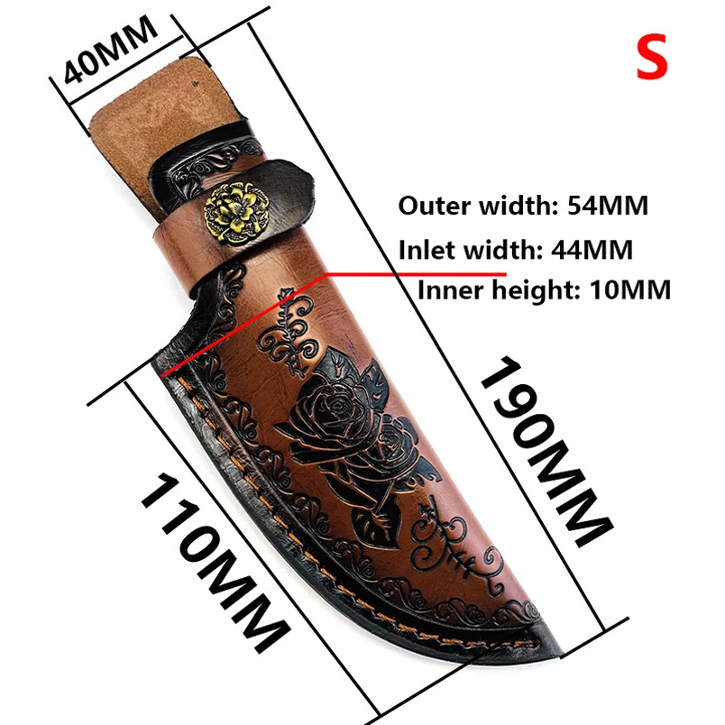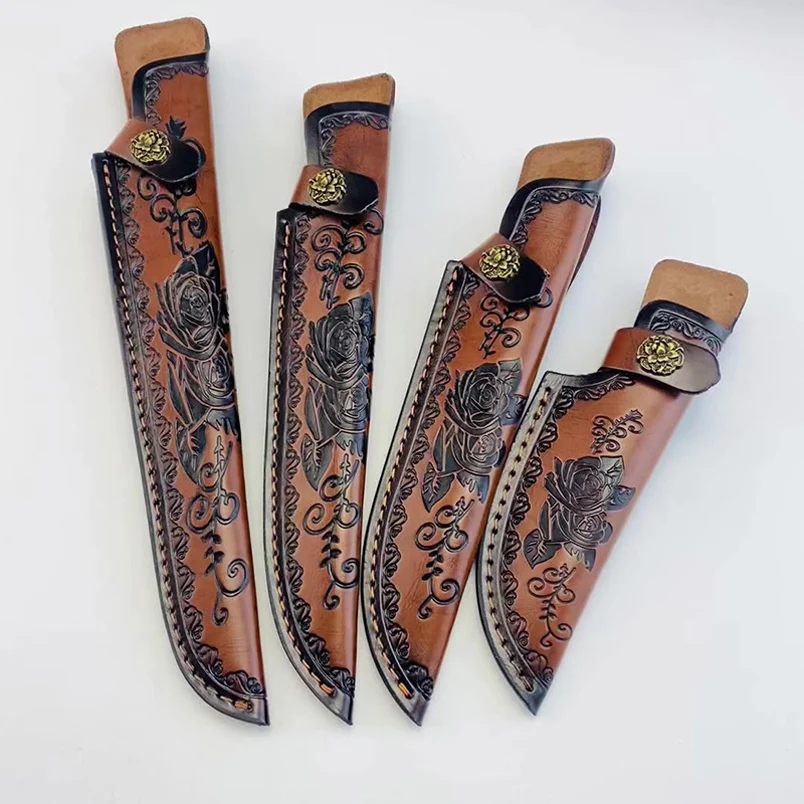 4 tamaños con hebilla de latón, patrón de flores, funda de hoja fija pequeña y mediana para exteriores, funda para cuchillo recto, funda para pantalones