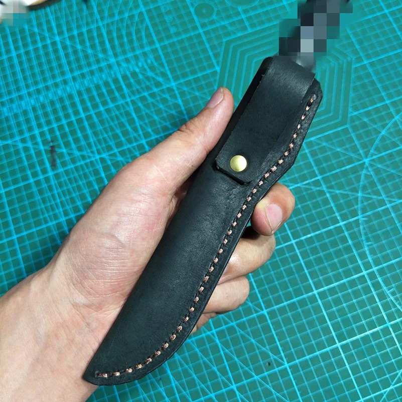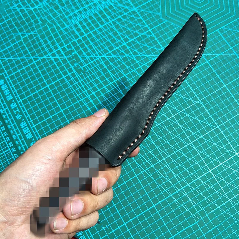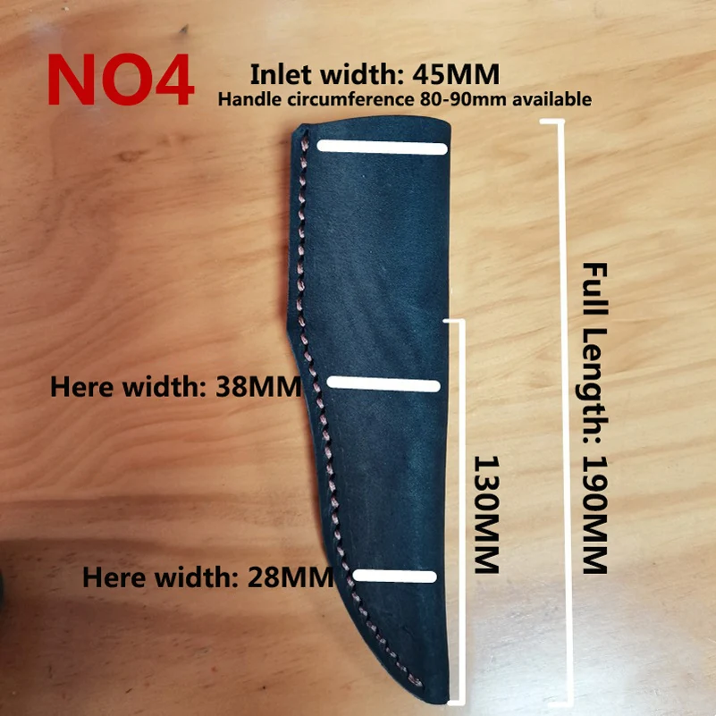 Cubierta de hoja fija de funda para cuchillo recto al aire libre de piel de vaca auténtica de 4 tamaños