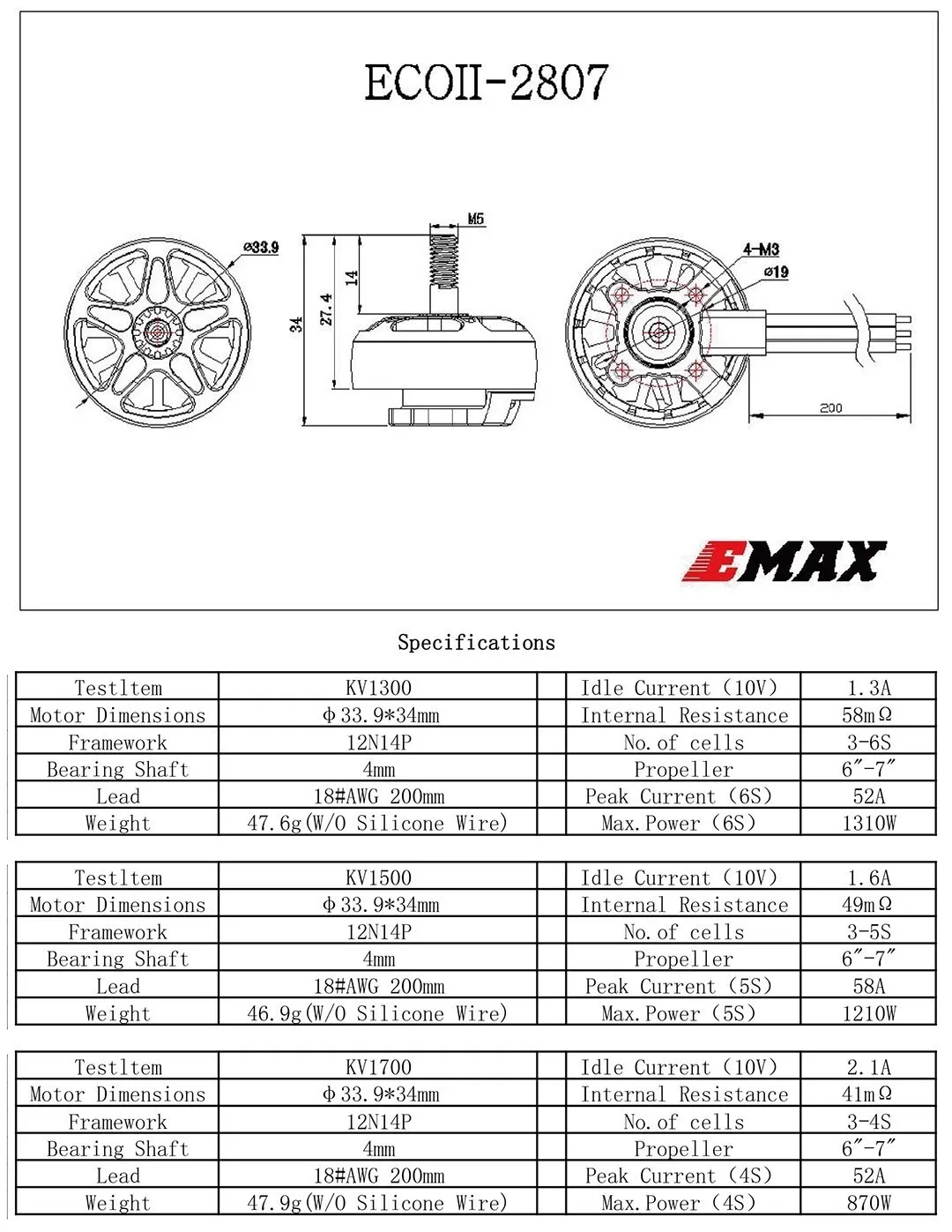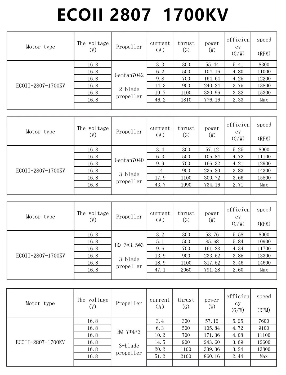 4 Uds EMAX ECOII serie ECO II 2807 6S 1300KV 5S 1500KV 4S 1700KV Motor sin escobillas para Dron de carreras con visión en primera persona piezas DIY