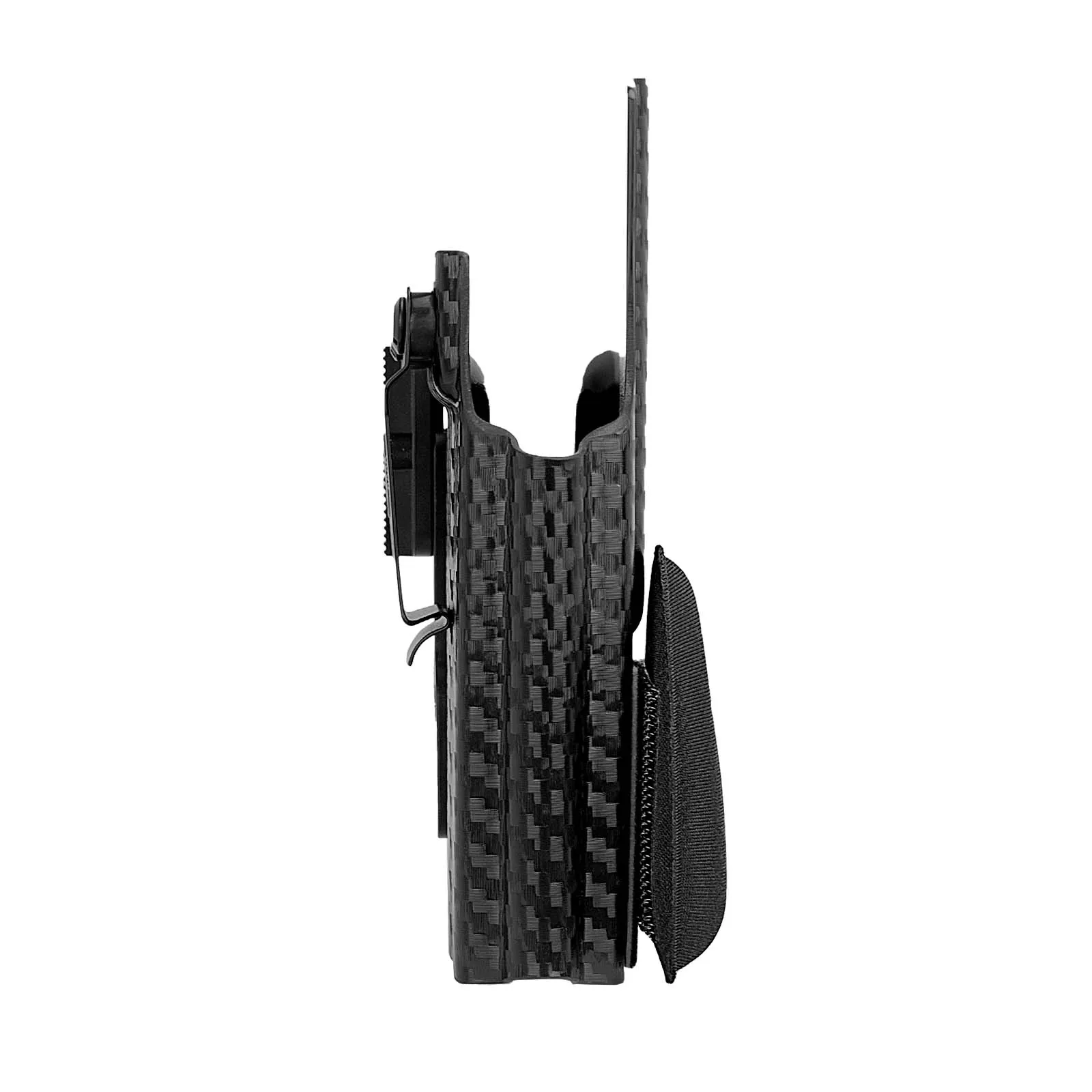 La cuña de la funda aleja la boca de su cuerpo mientras acerca la parte superior de su arma, reduciendo significativamente la impresión.