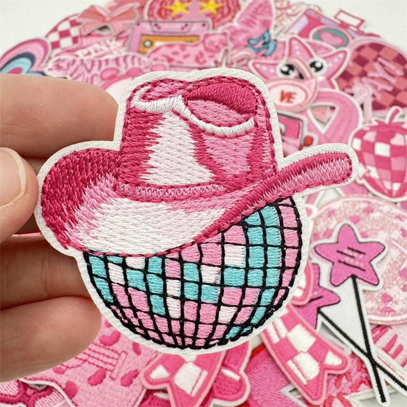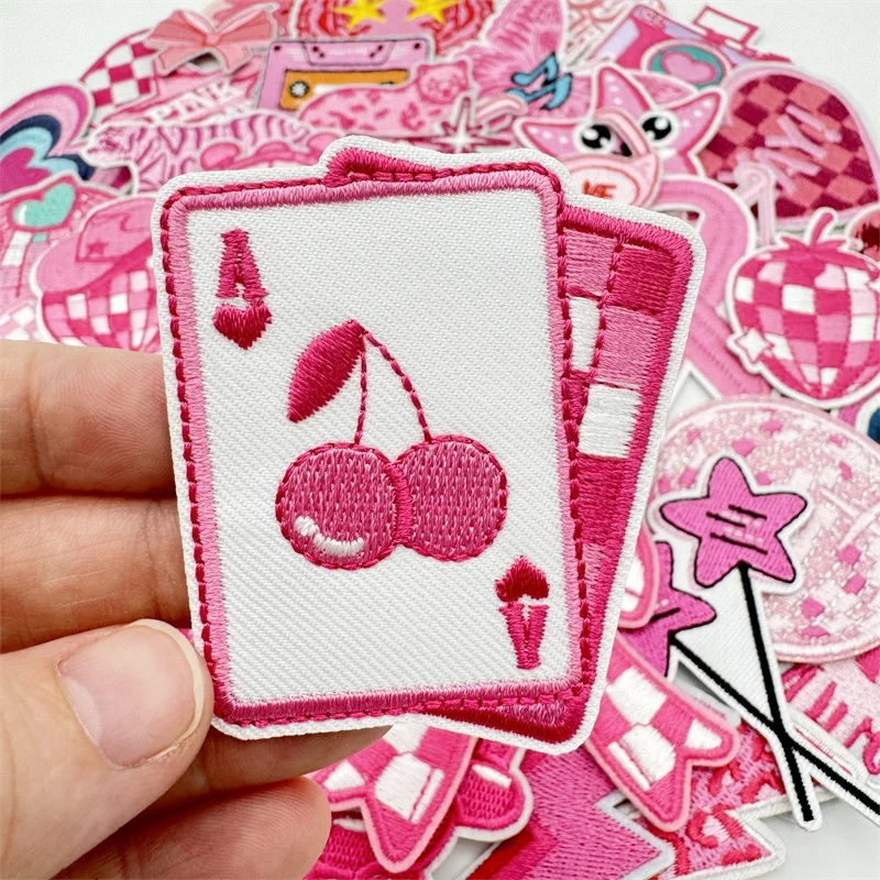 40 unids/lote de parches bordados surtidos de color rosa para ropa, apliques bordados, suministros para planchar, parche decorativo para planchar
