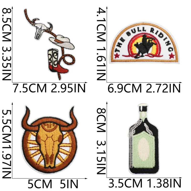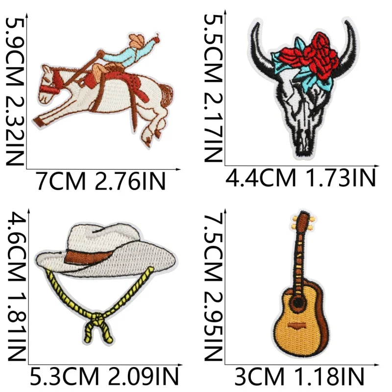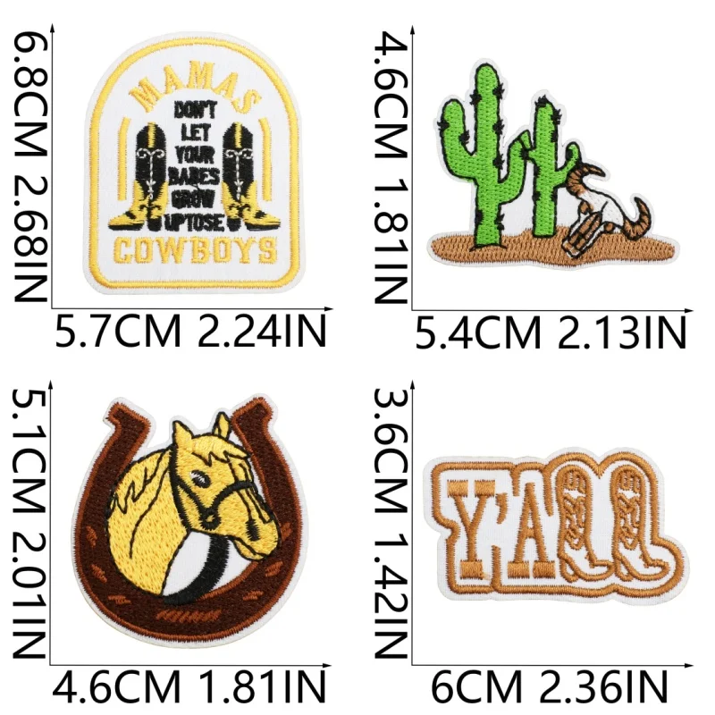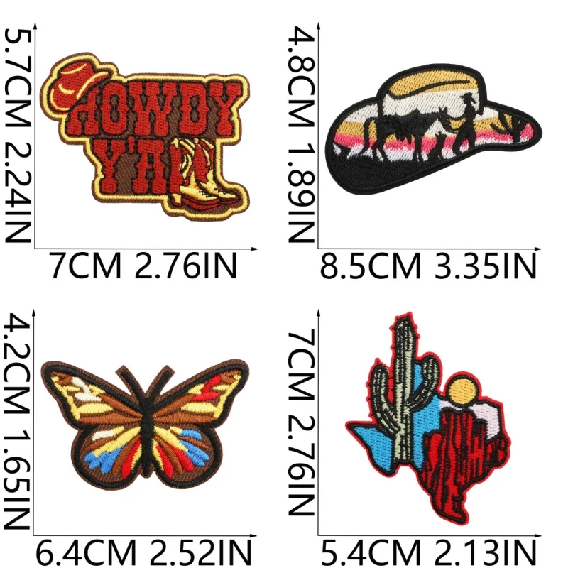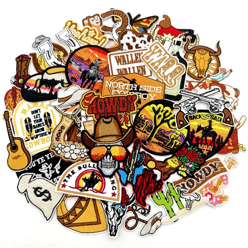 40 unids/lote, parches bordados de vaquero del oeste, apliques para ropa DIY, parches para planchar/coser, pegatinas de rayas