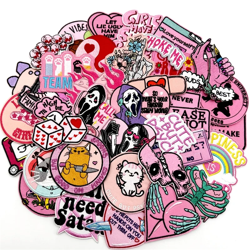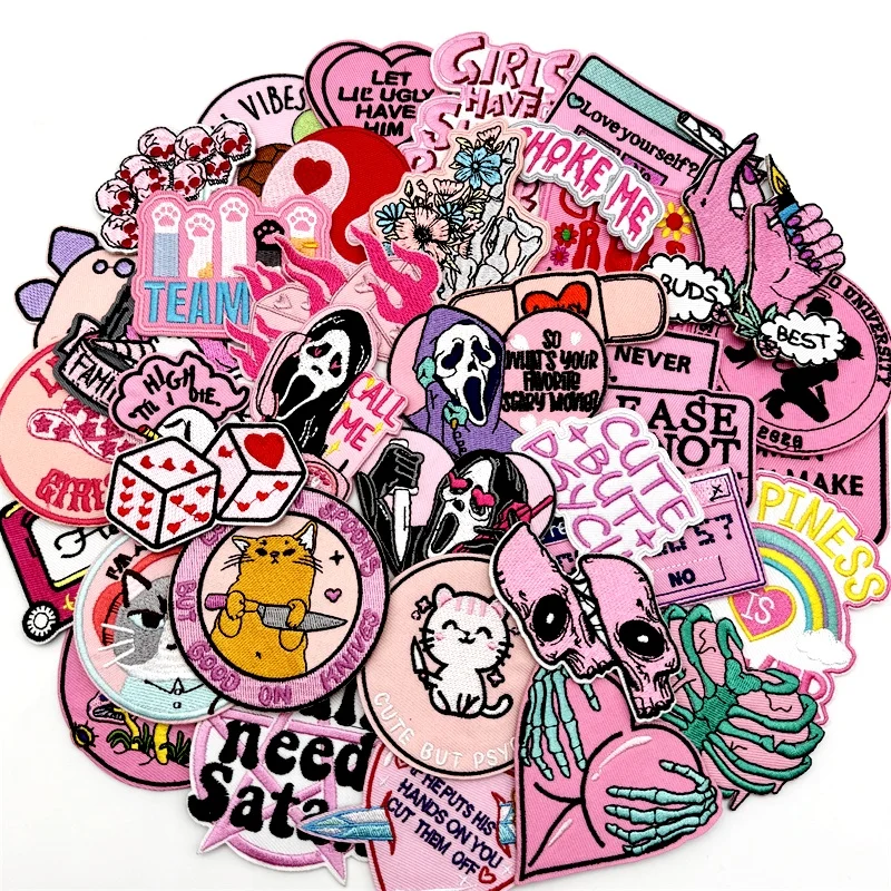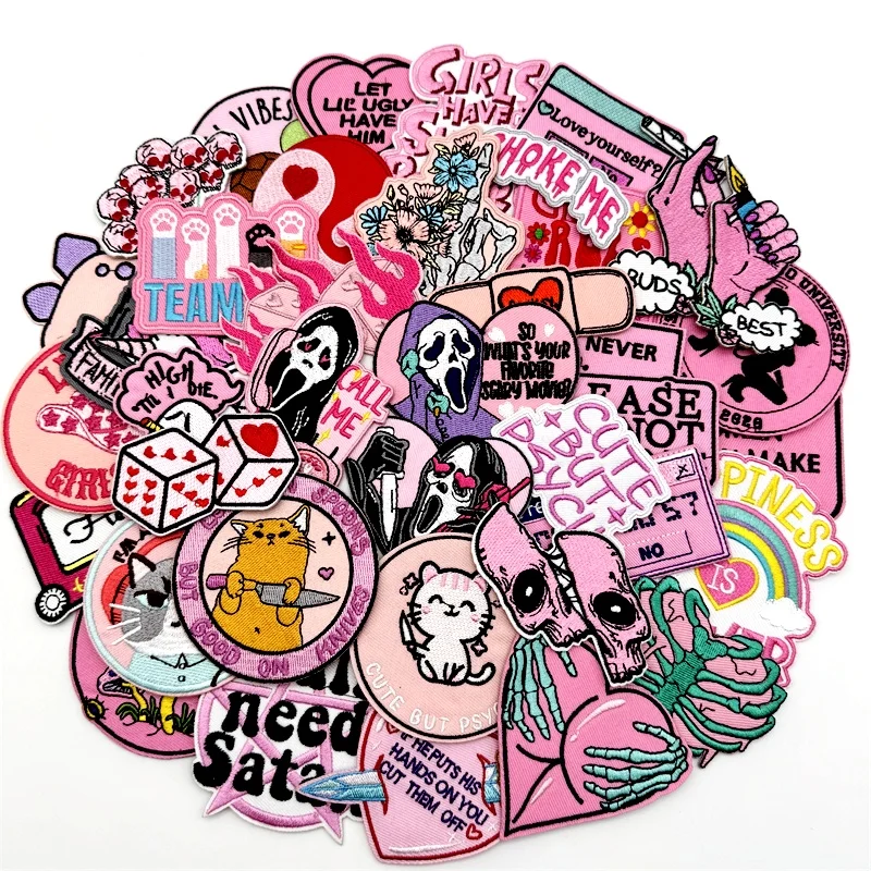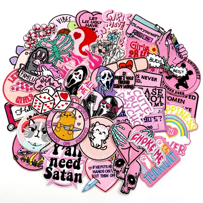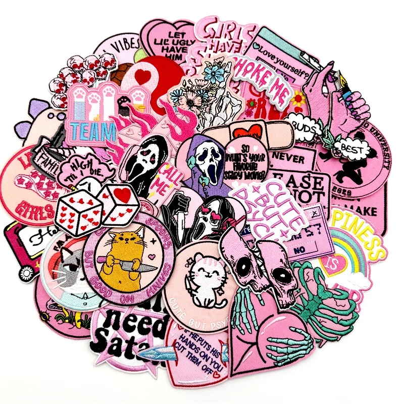 40pcs/lot PUNK Assorted Embroidery Patches Applique for Clothing Iron on Patches DIY Decoration Stripes Stickers Jean Jacket