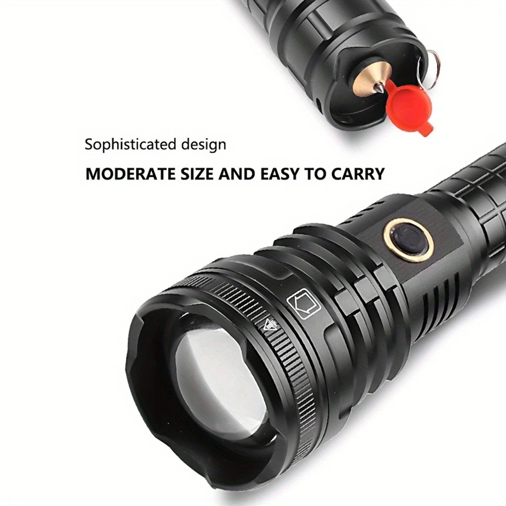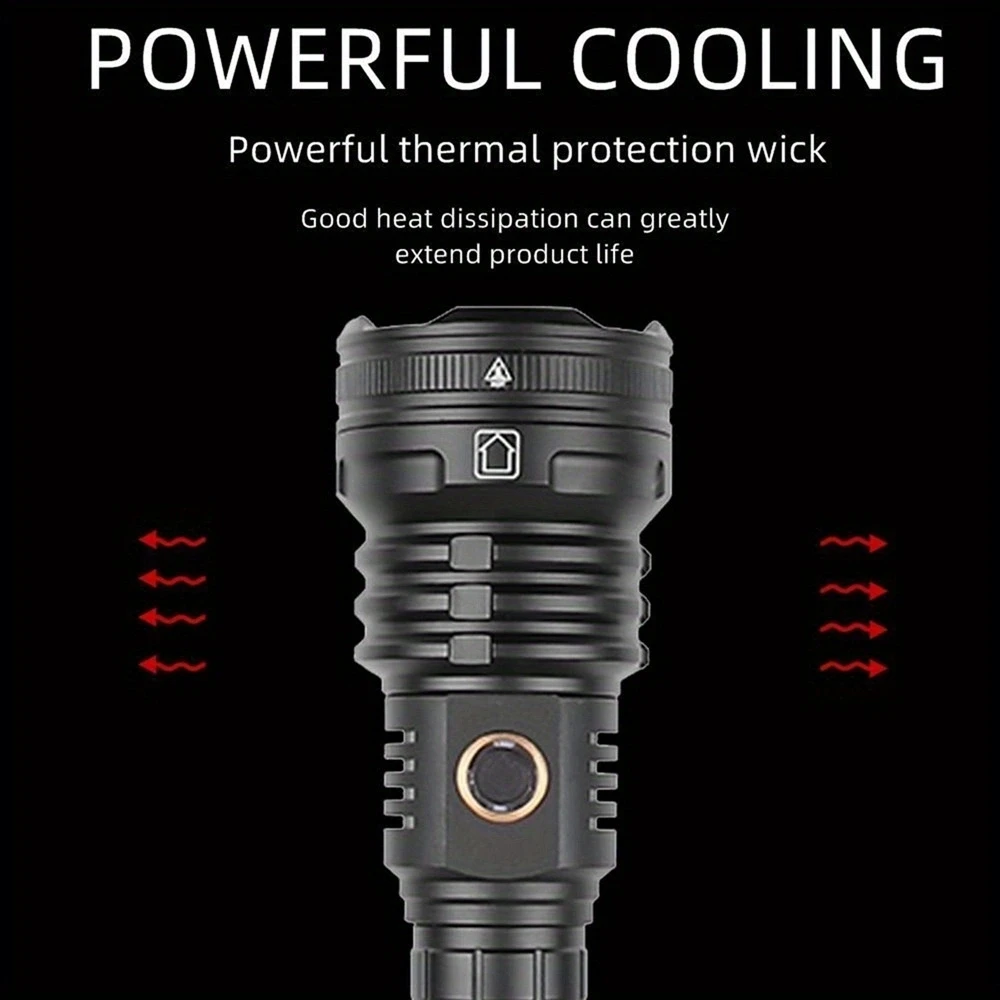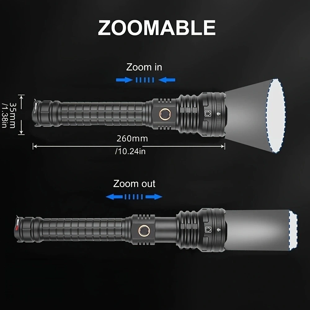 1 linterna LED. 2 baterías 26650 2 fundas para batería 18650 1 cable de carga USB 1 caja