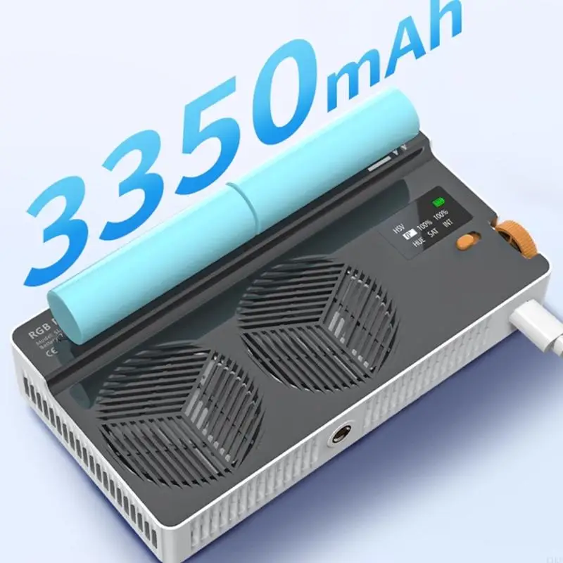 Manténgase móvil con la batería de carga rápida incorporada que ofrece 40 minutos de funcionamiento y monitoreo LCD en tiempo real para ajustes de brillo/CCT/rgb.