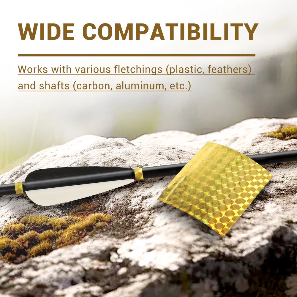 5.Además de asegurar las plumas de las flechas, la cinta también protege la superficie del eje de la flechas, evitando rayones y otros daños físicos, extendiendo así la vida útil del equipo de flechas.