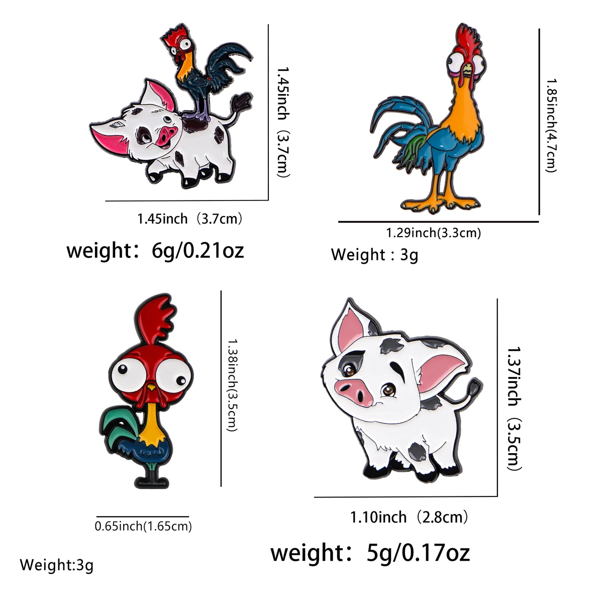 4ocs/juego de alfileres esmaltados de pollo y cerdo, conjunto de broche de dibujos animados, Pin de solapa de Metal, insignia, accesorios para mochila, joyería, regalos para niños