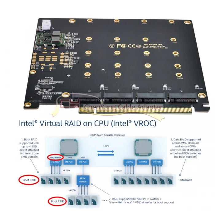 Tarjeta Raid 4X NVME M.2 AHCI a PCI-E Express 3,0 Gen3 X16 con ventilador VROC Raid0 Hyper Adapter