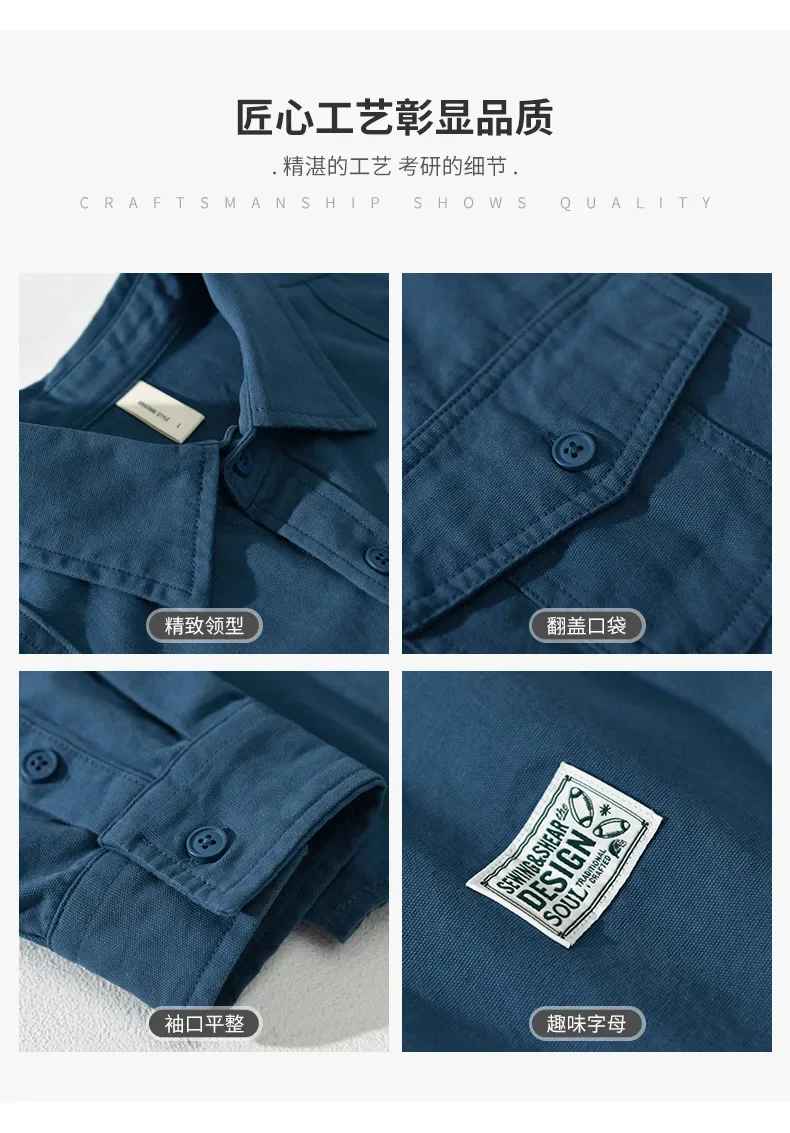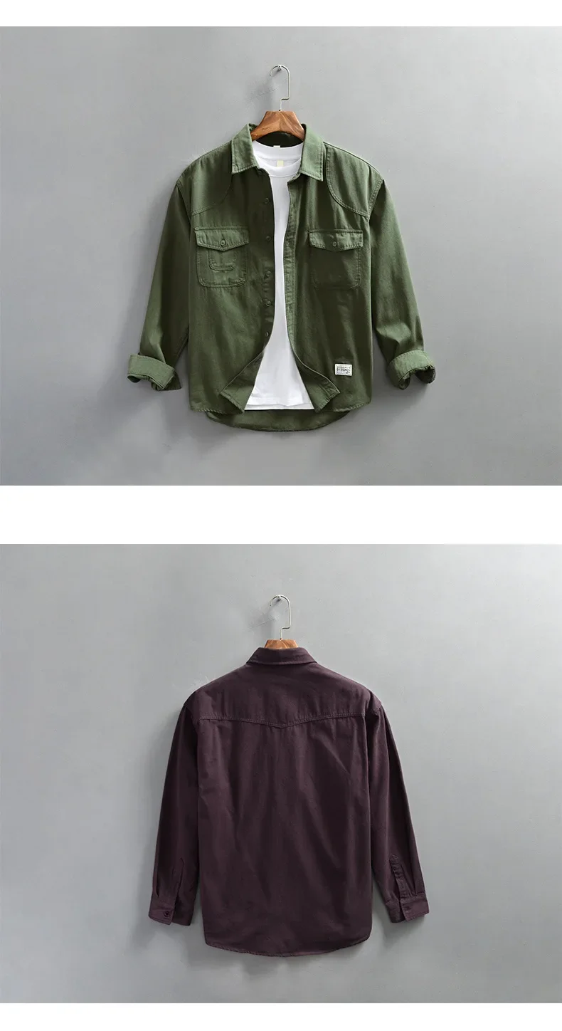 4XL 100% camisas de algodón para hombres 2025 primavera otoño moda blusas de manga larga para hombres jóvenes Casual suelta masculina Cargo Tops Shirtcoat