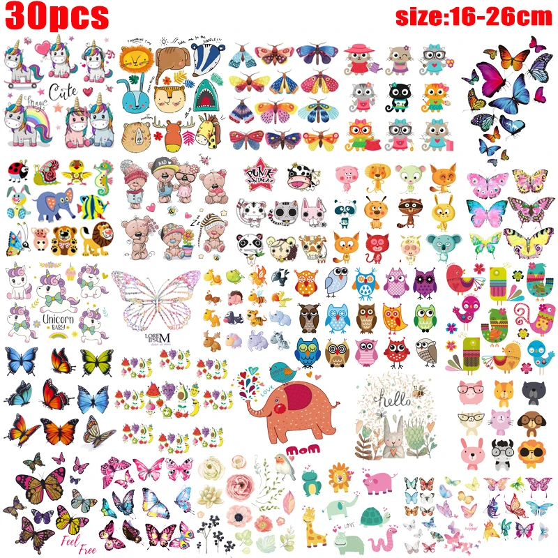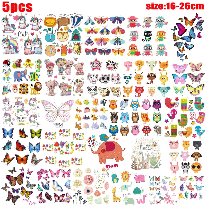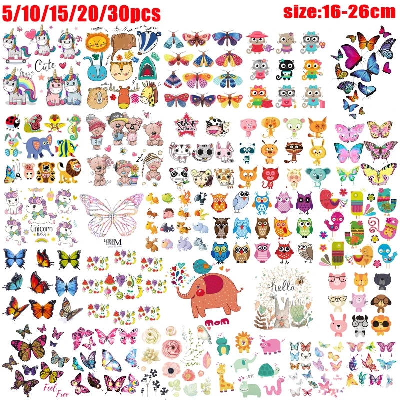 5/10/15/20/30 Uds. Transferencias de hierro de animales lindos al azar DIY transferencia de calor de dibujos animados planchado pegatinas térmicas ropa coser apliques