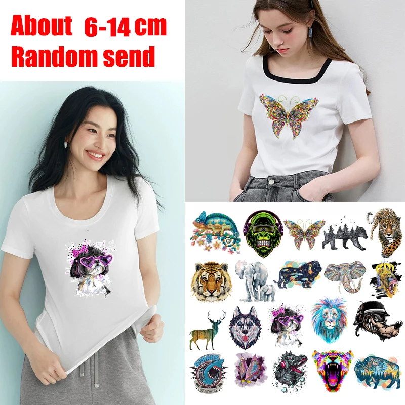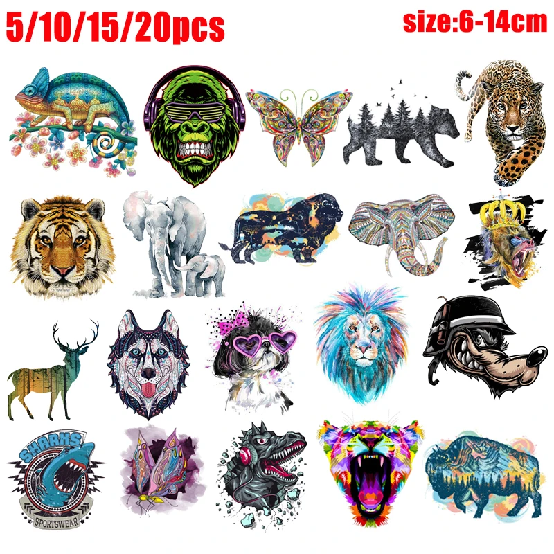 5/10/15/20 piezas al azar Animal transferencia de calor parche para ropa camiseta DIY aterrador tigre leopardo transferencias de hierro pegatinas térmicas