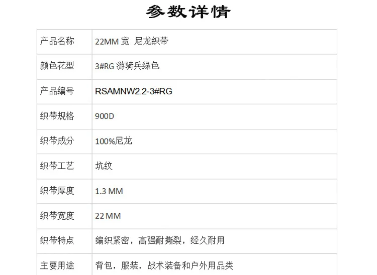 Usos principales: Mochilas, ropa, equipos tácticos y productos para exteriores.