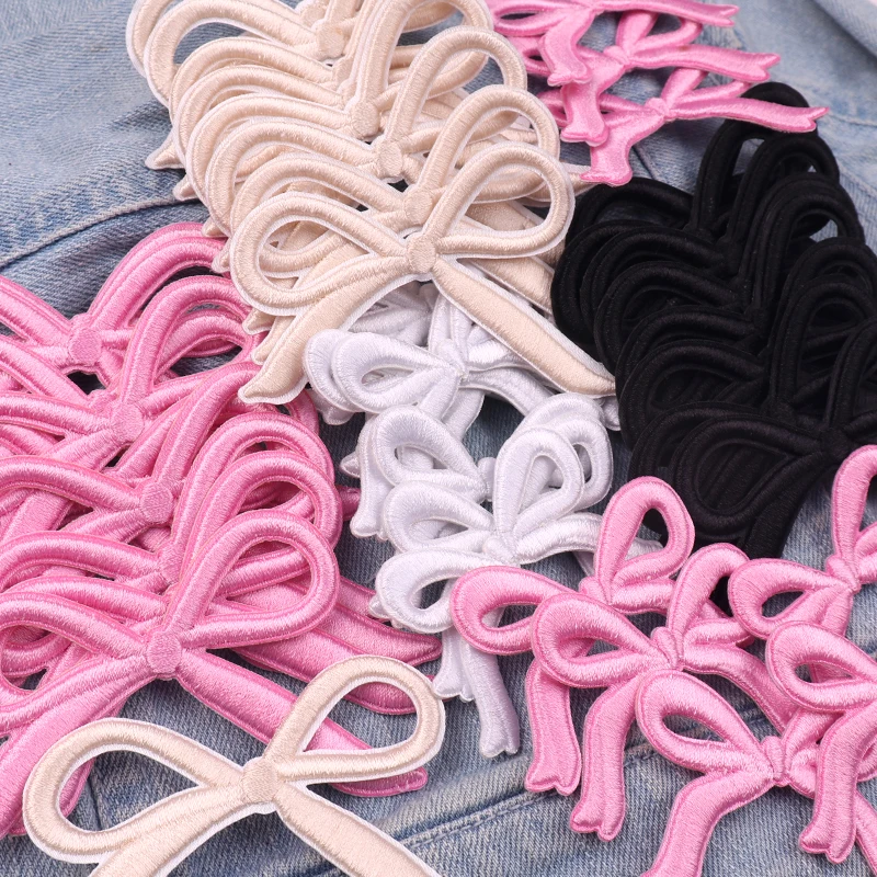 Parche bordado con lazo rosa, blanco, negro y Beige, parches termoadhesivos para ropa, decoración de ropa, costura DIY, 5/10 Uds.
