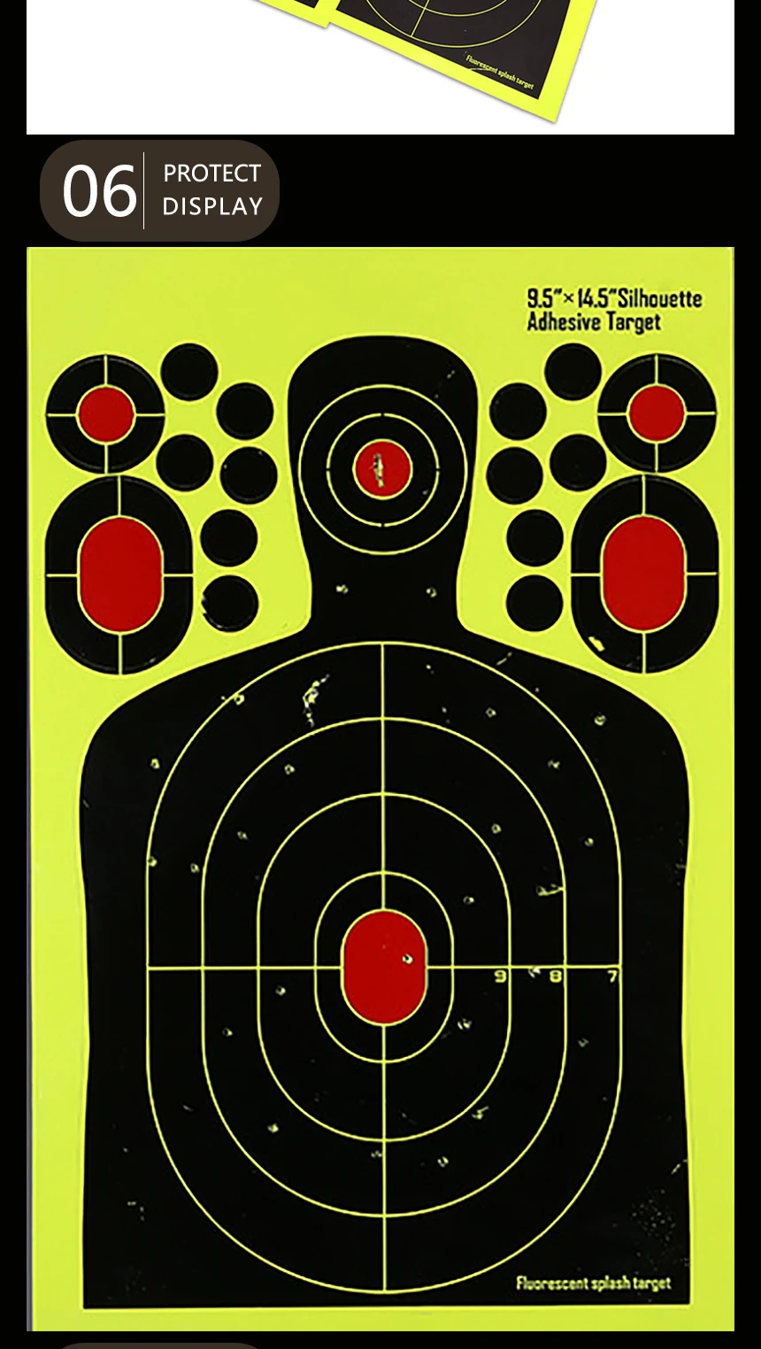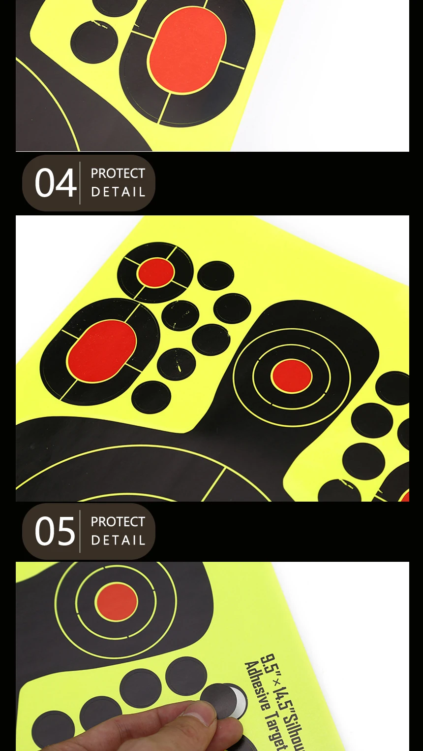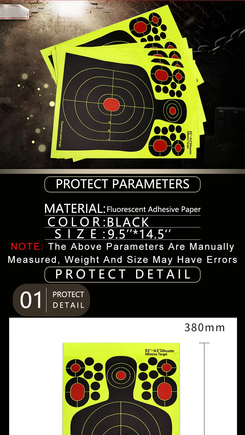 9,5*14,5 pulgadas de longitud media humanoide caza tiro objetivo papel fluorescente adhesivo Etiqueta de salpicaduras