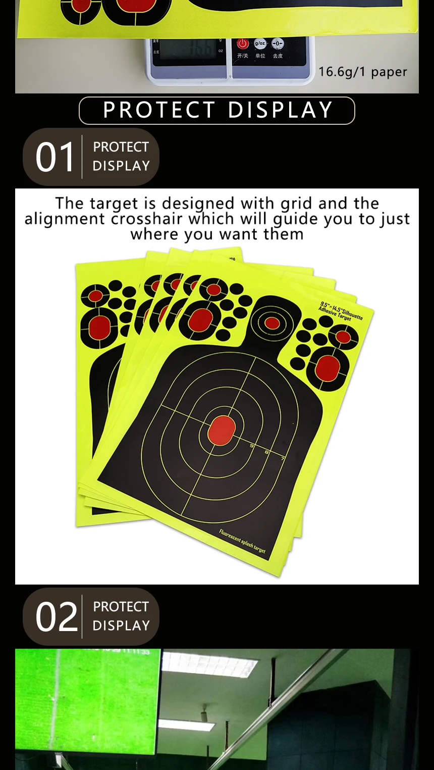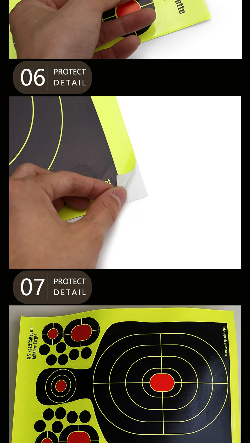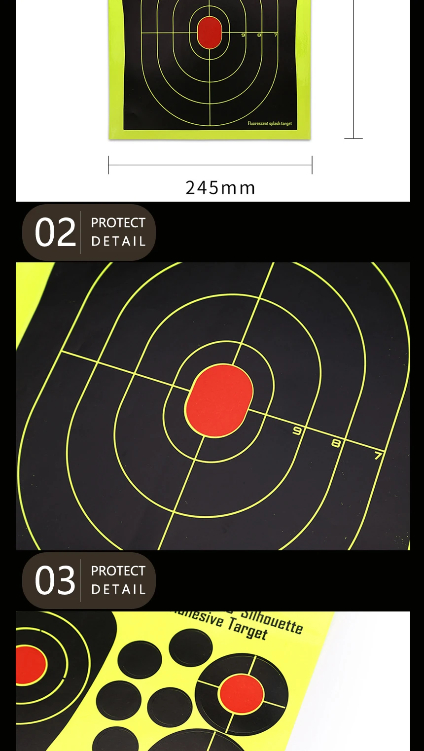 9,5*14,5 pulgadas de longitud media humanoide caza tiro objetivo papel fluorescente adhesivo Etiqueta de salpicaduras