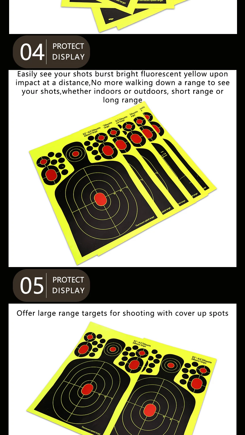 4. Vea fácilmente que sus disparos explotan amarillo fluorescente brillante al impactar en un.