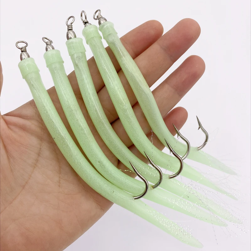 5 uds * CodfishFishing Anguila tubo Jig cebo vástago offset gancho de pulpo con púas hilo giratorio pluma Sabiki aparejo pesca en el mar