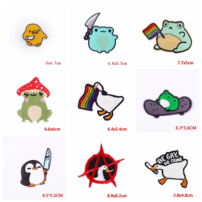 Parche bordado de dinosaurio Corgi Cat Frog, parches de hierro para ropa, parches termoadhesivos, parches de animales de dibujos animados DIY, 5 uds.