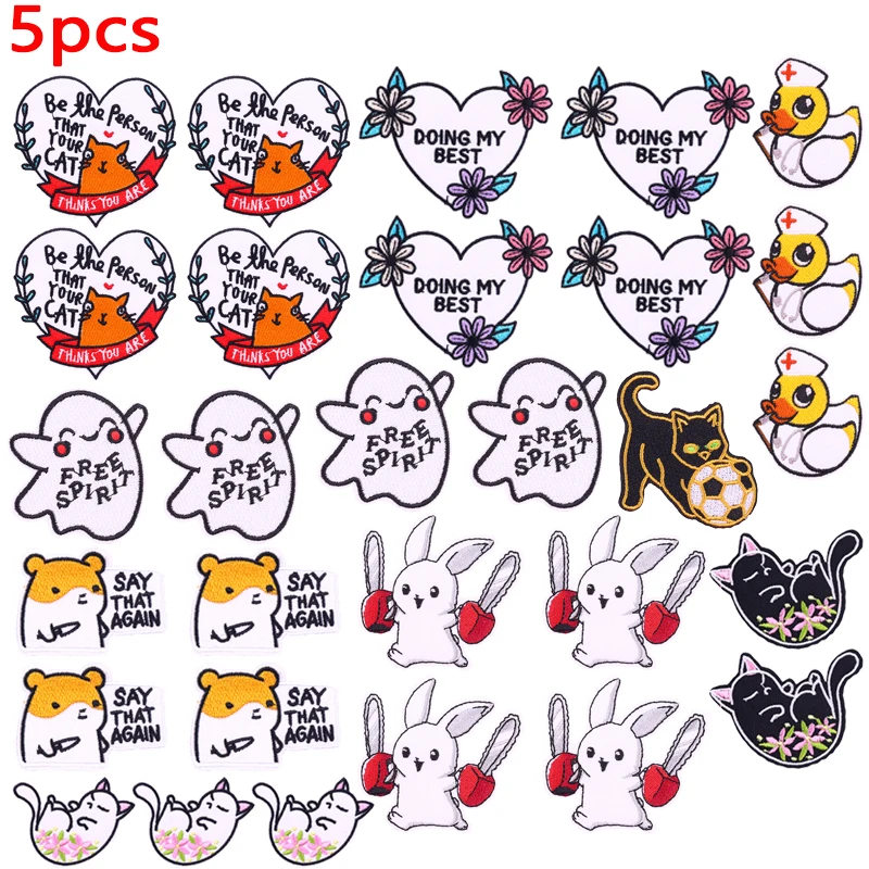 5 uds dibujos animados/animales DIY pato gato Rana hierro en parches bordados para ropa parches termoadhesivos en decoración de ropa