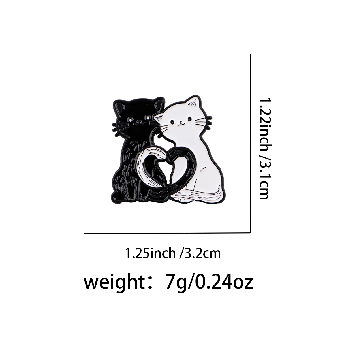 5 uds lindo gato blanco y negro esmalte Pin solapa Pin dibujos animados pareja broche conjunto alfileres de Metal mochila sombrero insignia Accesorios