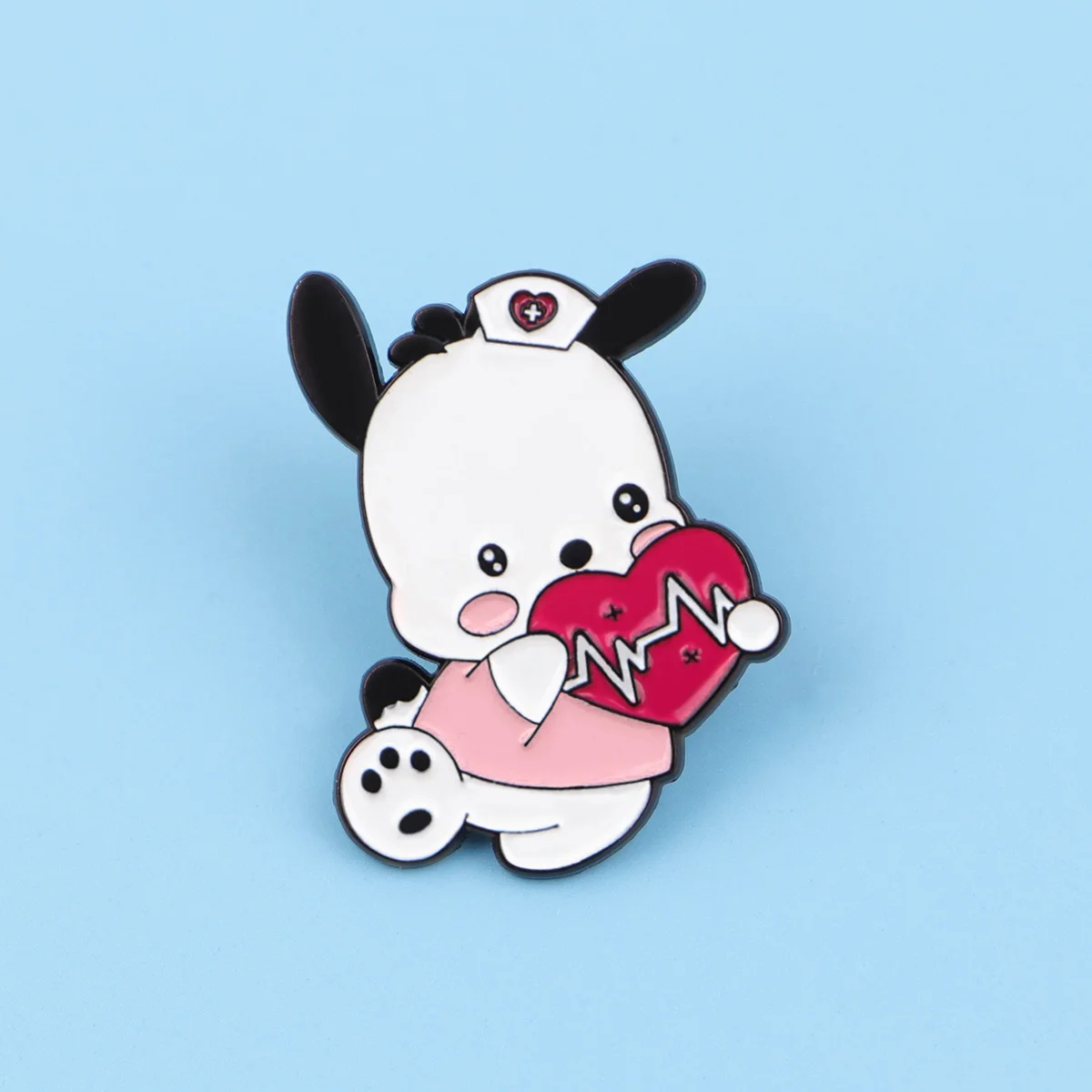 5 uds lindo perro esmalte Pins dibujos animados Anime broche conjunto Metal solapa Pin insignia mochila accesorios joyería regalos para niñas