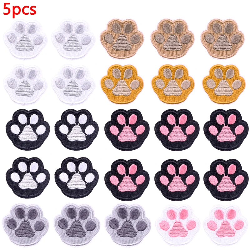 5 uds parche de dibujos animados parches bordados DIY varias garras de gato parches para planchar para ropa chaquetas coser pegatinas bordadas