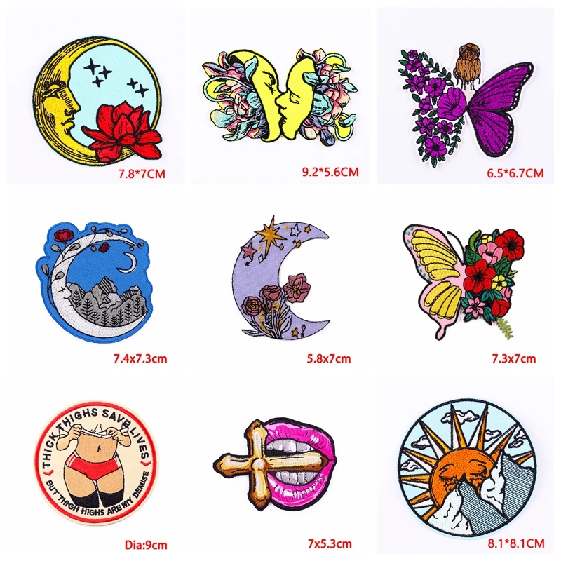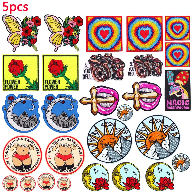 Parche bordado para exteriores/dibujos animados, 5 uds., para ropa, DIY, mariposa/sol y Luna, parches de hierro para ropa, apliques de costura