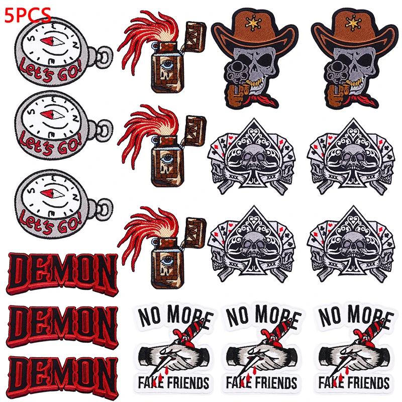5 uds venta al por mayor parches bordados Punk DEMON para ropa llama hierro en parche en ropa DIY coser en insignias de pegatinas de personalidad