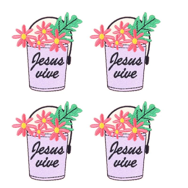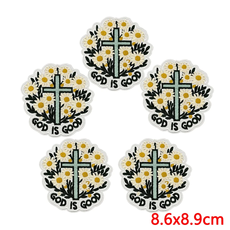 5 uds., venta al por mayor de dibujos animados Jesús bordado para ropa, parches de hierro para ropa, sombreros, mochilas, chaquetas, insignias bordadas de costura