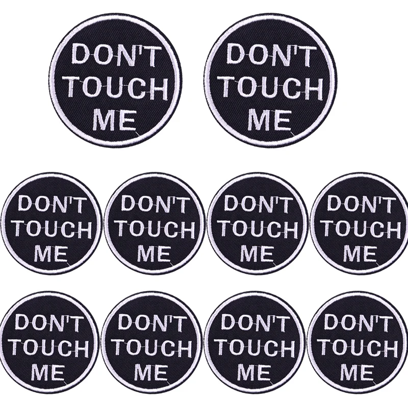 5 unids/lote Don't Touch Me planchar en parches bordados para ropa chaquetas DIY parche de forma redonda en ropa parche termoadhesivo