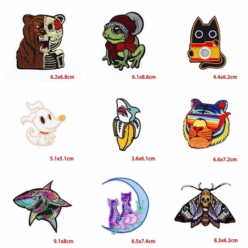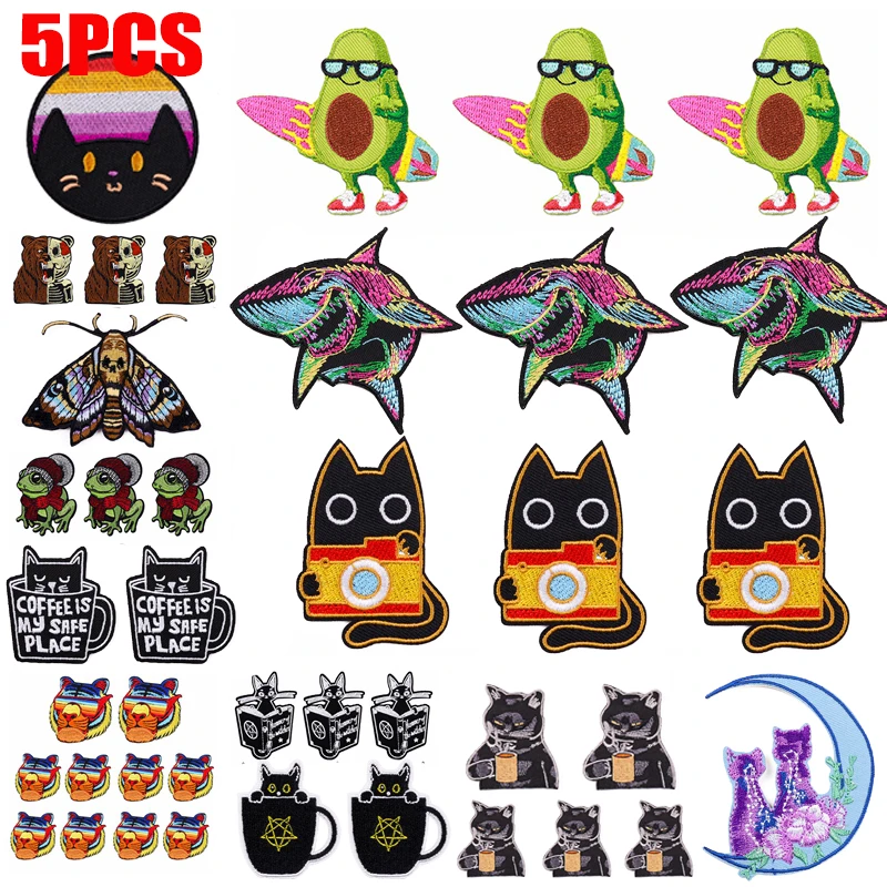 5 unids/lote parche de animales de dibujos animados gato tiburón mariposa parche hierro en parches para ropa DIY chaquetas sombreros mochila insignias de costura