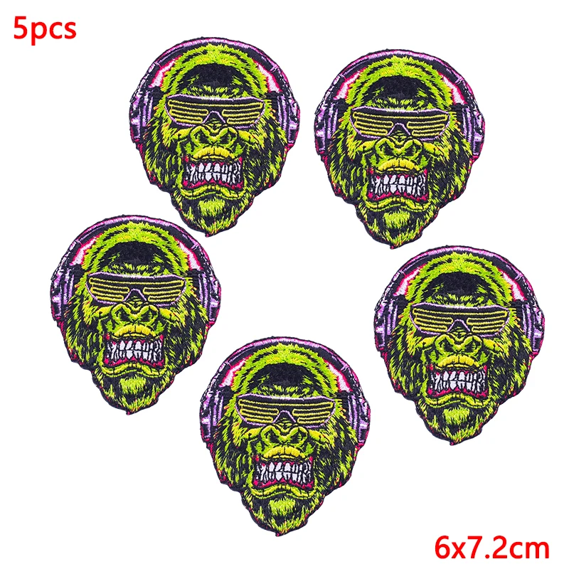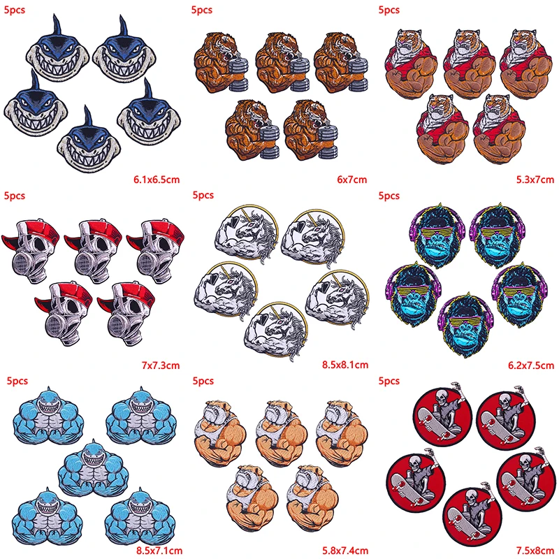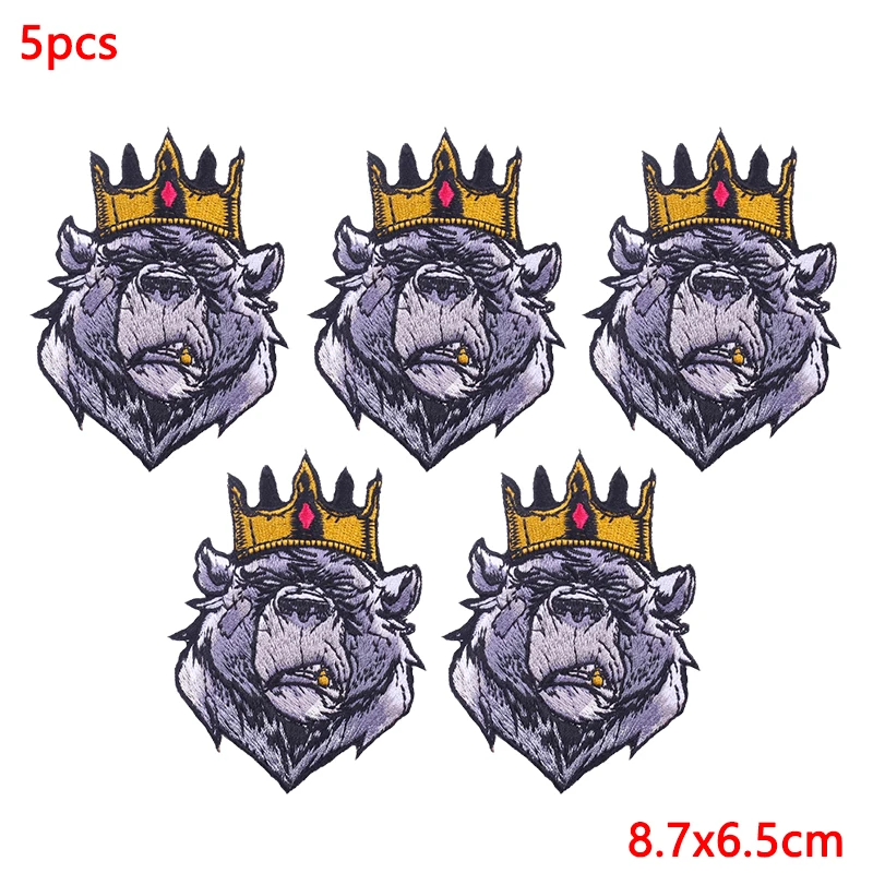 Parche de animales Punk para ropa, parches bordados termoadhesivos para ropa, parche de Hip Hop para ropa, 5 unids/lote