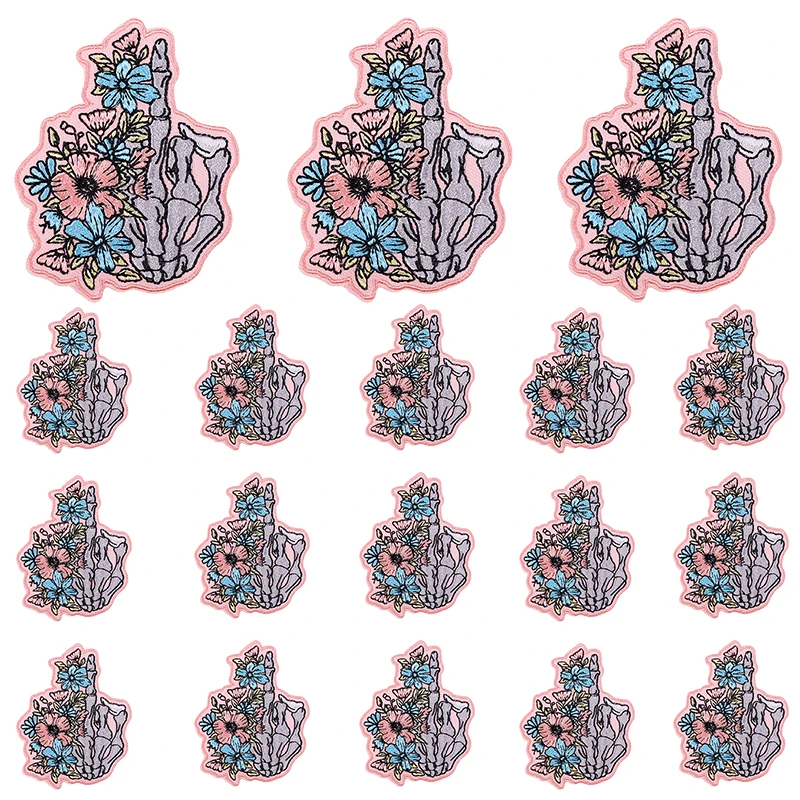 Parche Punk de póquer, 5 unids/lote, parches bordados de esqueleto de rosa/mariposa para pantalones vaqueros, parche de calavera DIY, parches de hierro para ropa