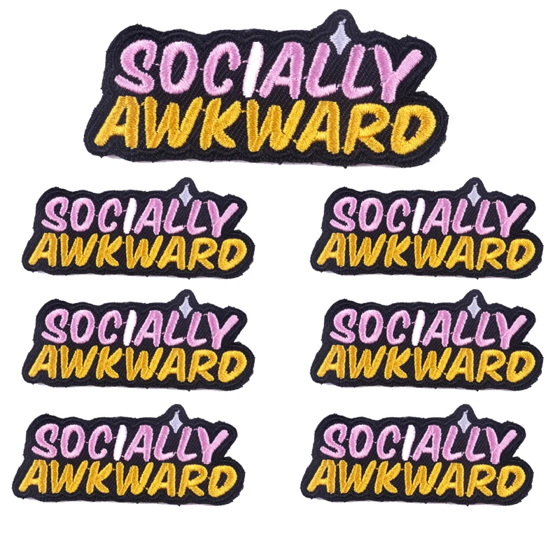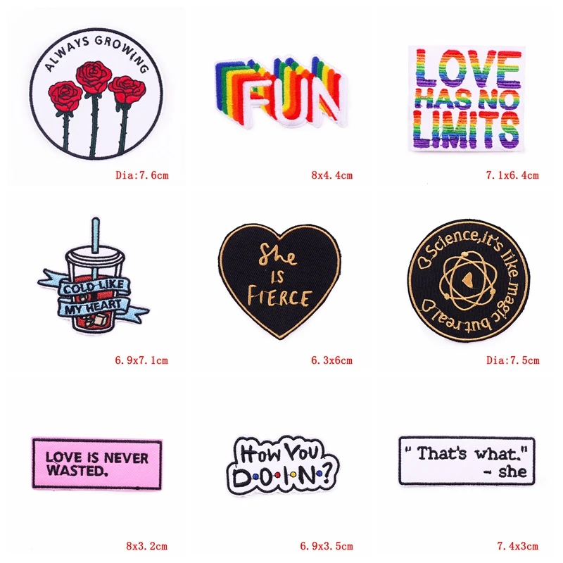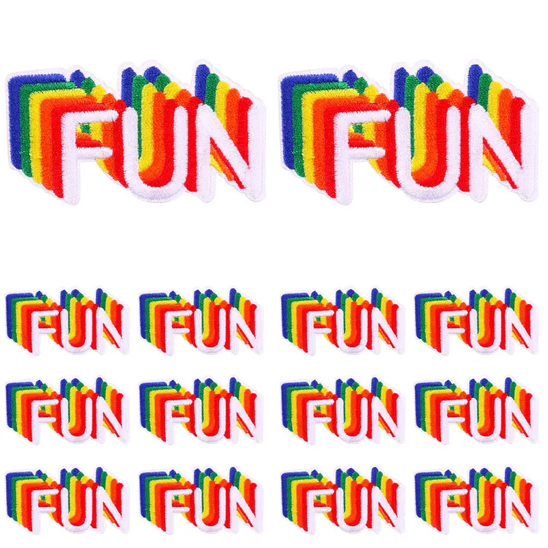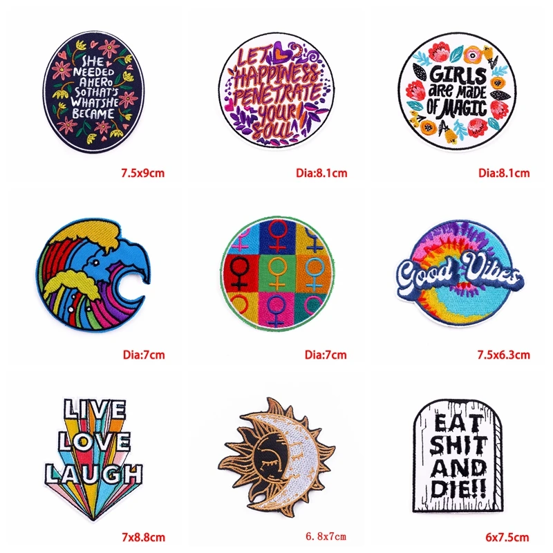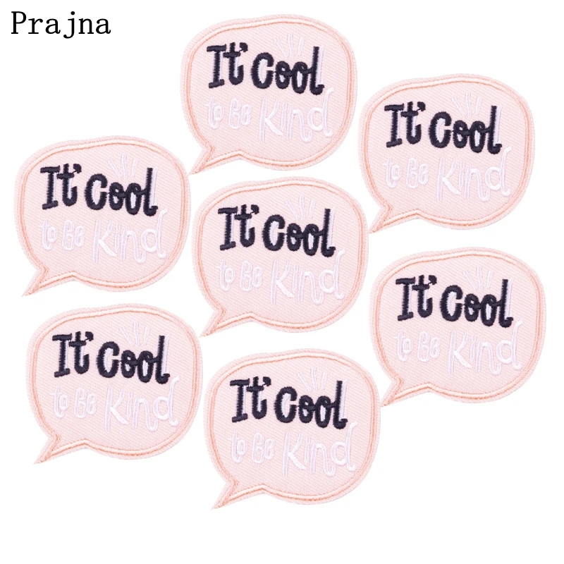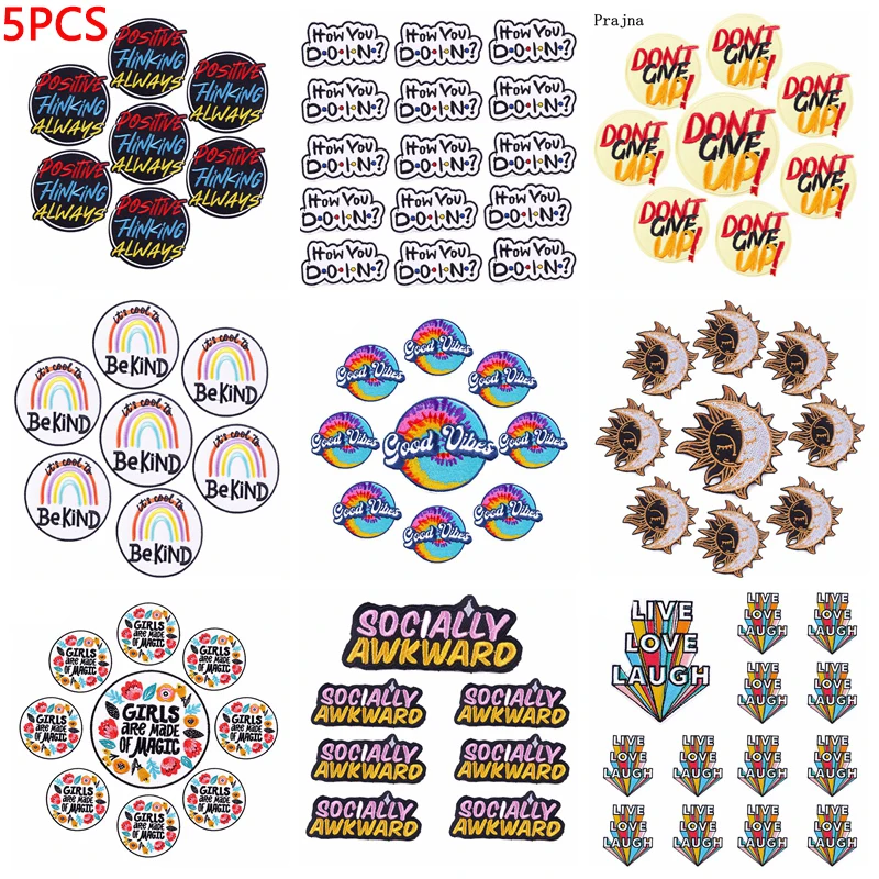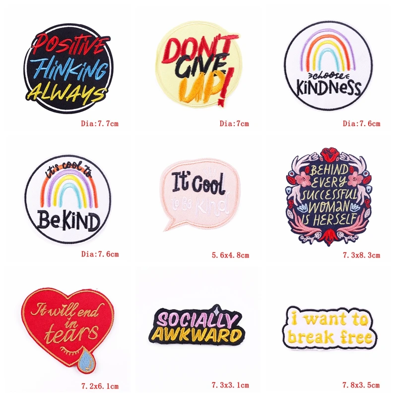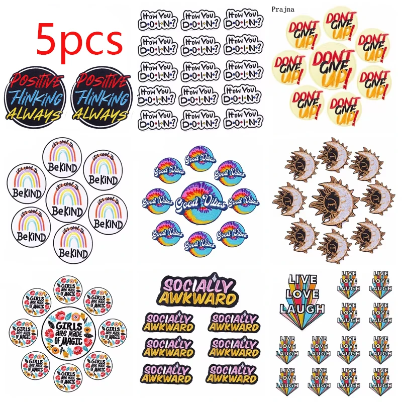 Parche redondo de dibujos animados para ropa, parches termoadhesivos para ropa, parches bordados con palabras coloridas, 5 unids/lote