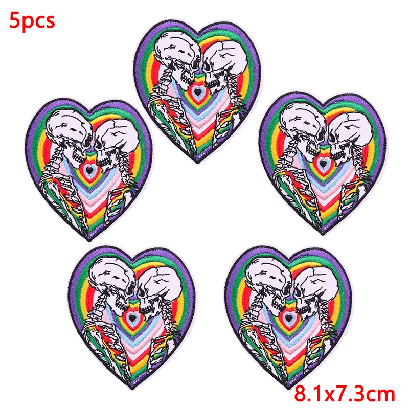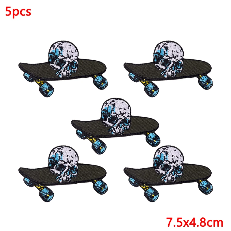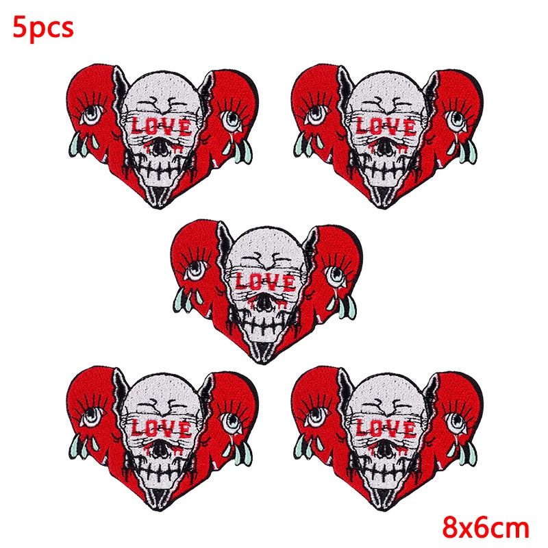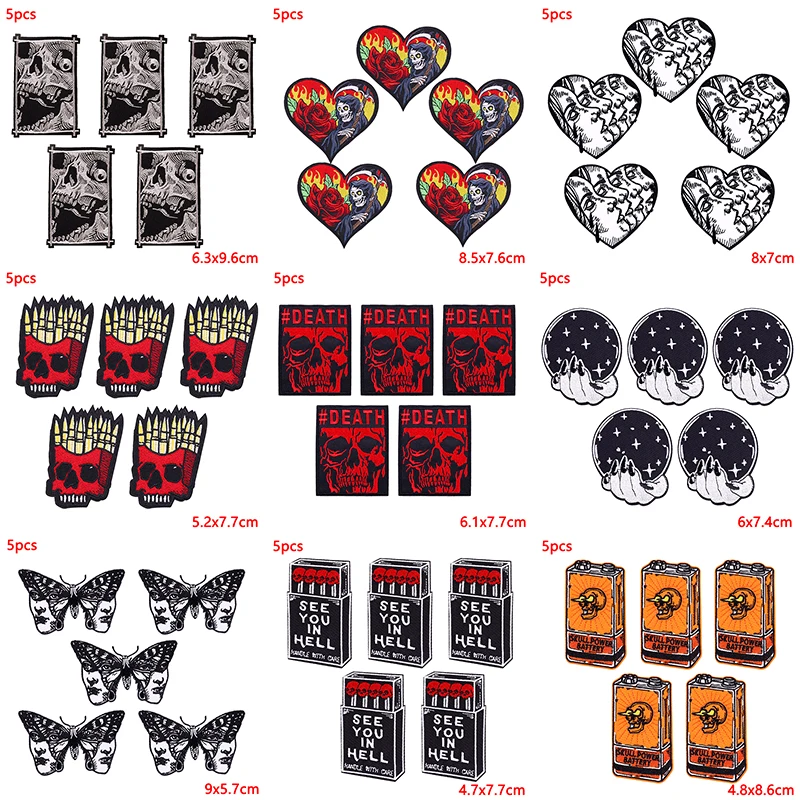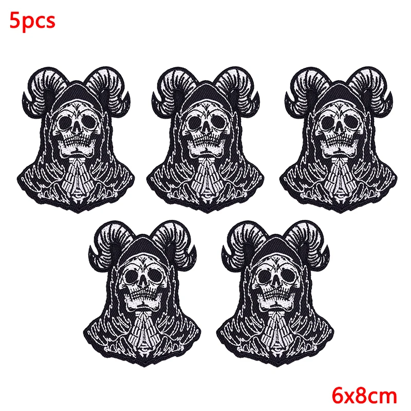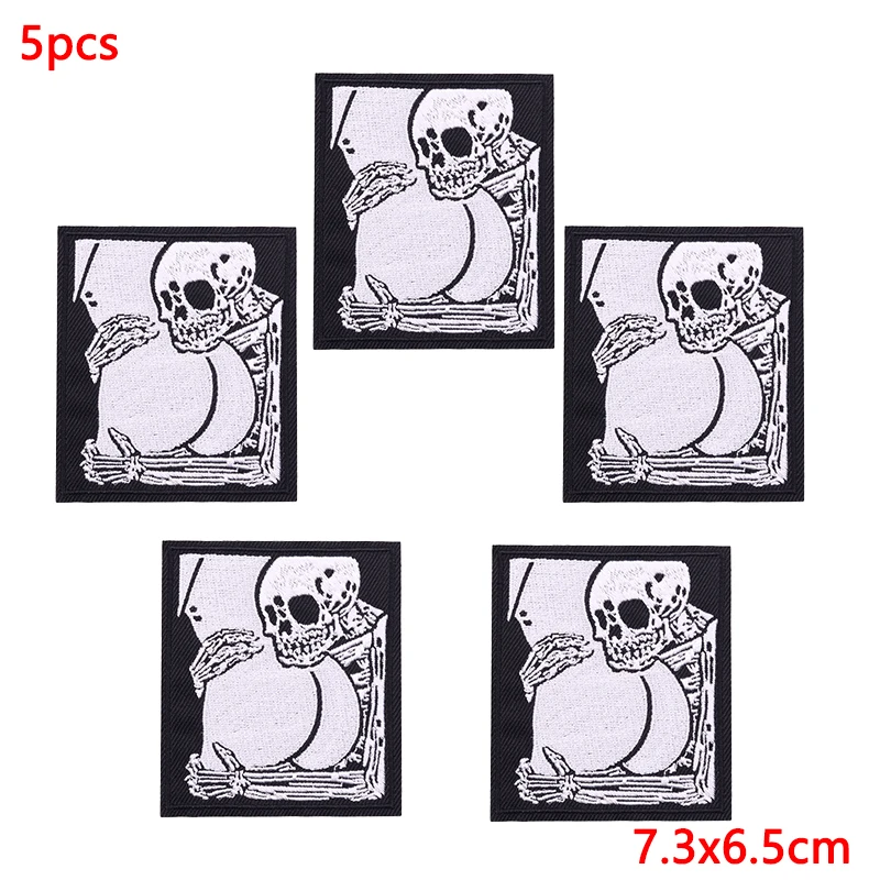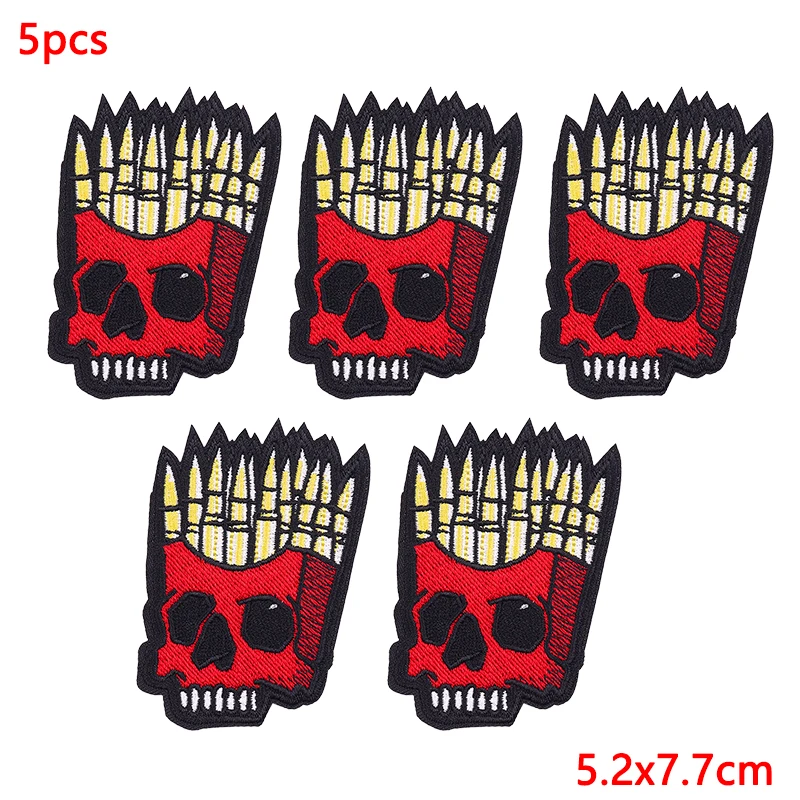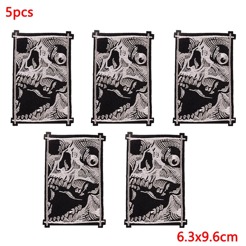 5 unids/lote parches bordados de calavera Punk para ropa parches termoadhesivos en ropa parche de Hip Hop parches de hierro para ropa