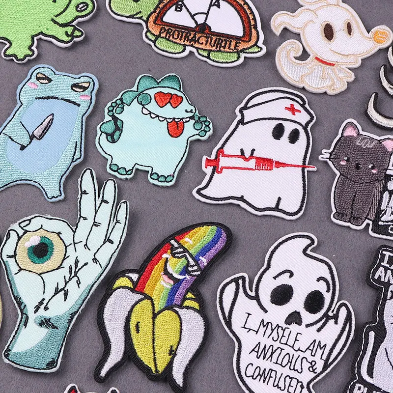 Parches bordados de fantasmas divertidos en la ropa, parches de hierro para ropa, insignias de animales Hippie DIY en la decoración de mochila