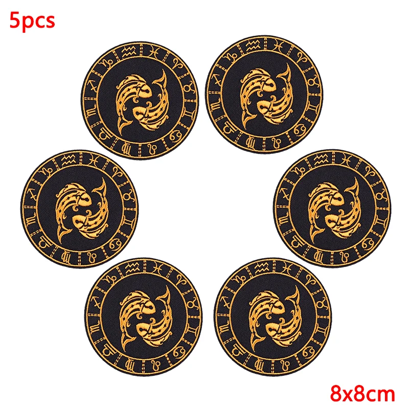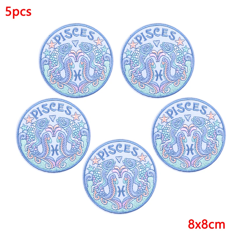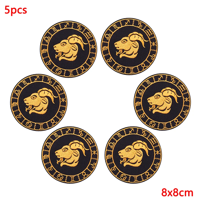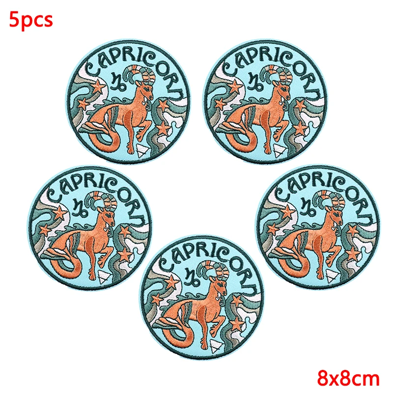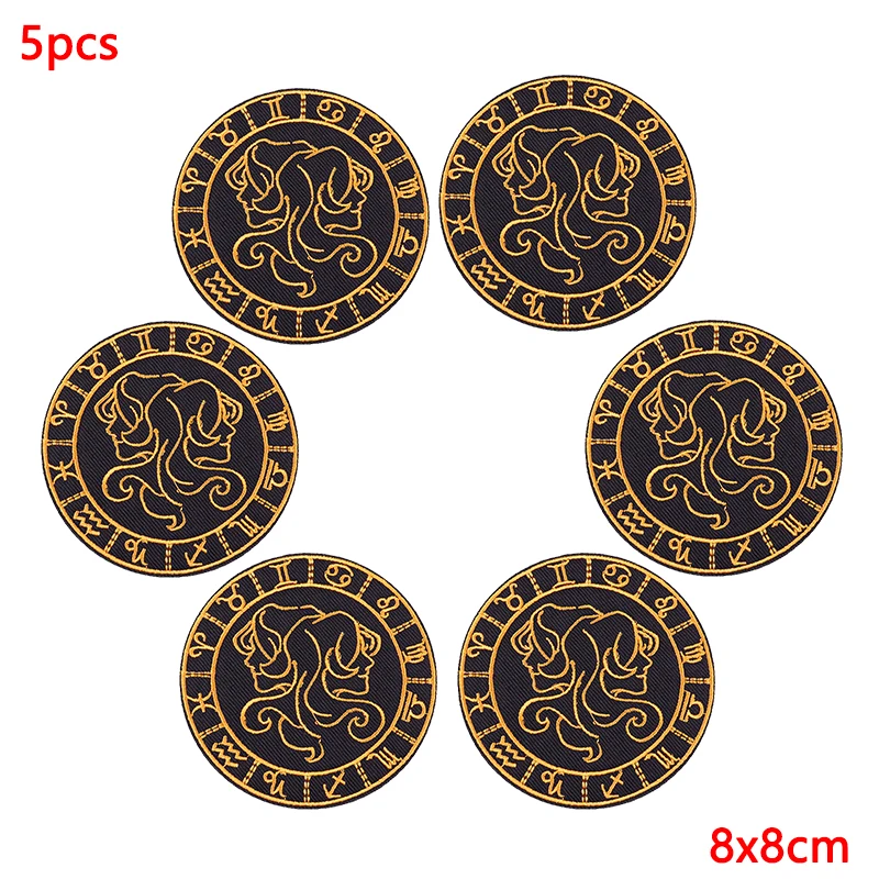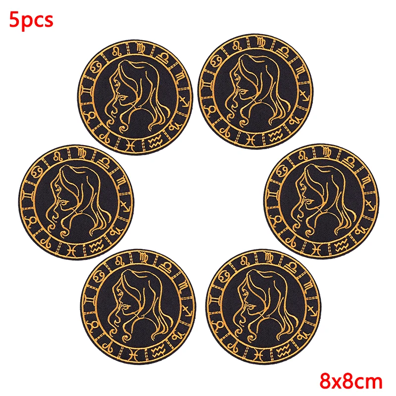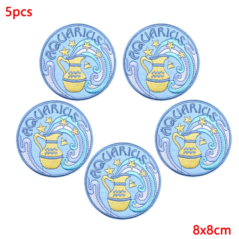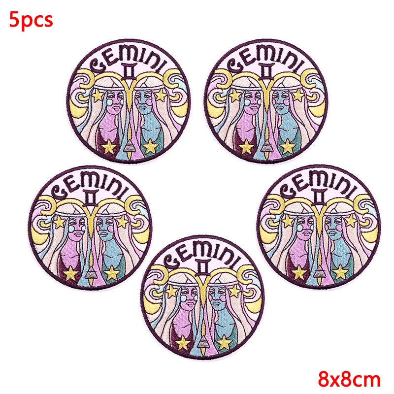 Parche de doce signos del zodiaco, parches bordados de hierro para ropa, parches termoadhesivos en ropa, parche Fusible Diy, 5 unids/lote