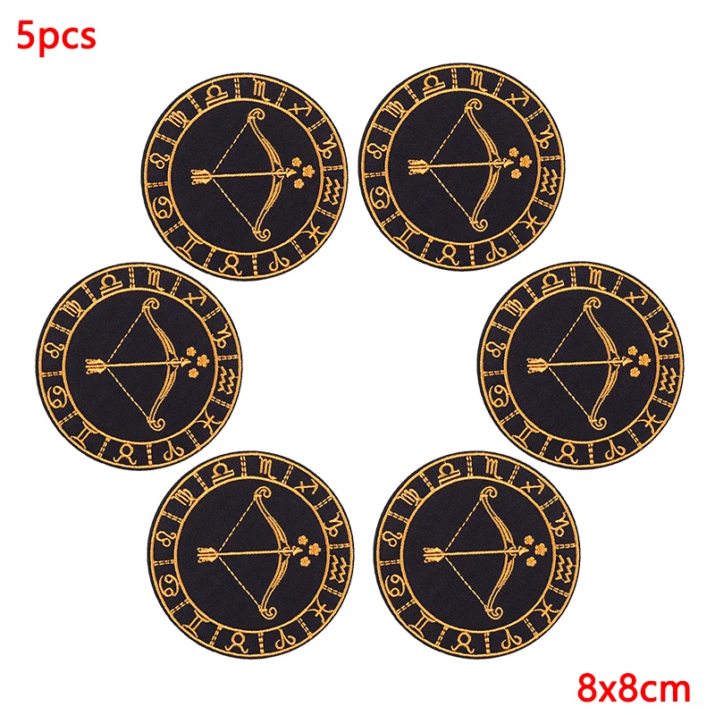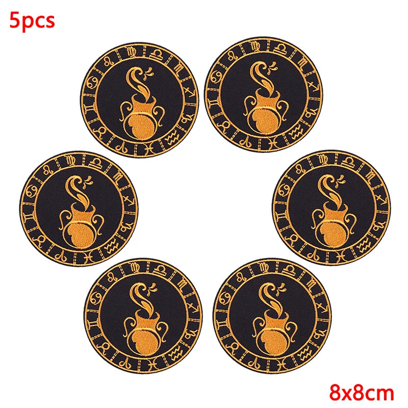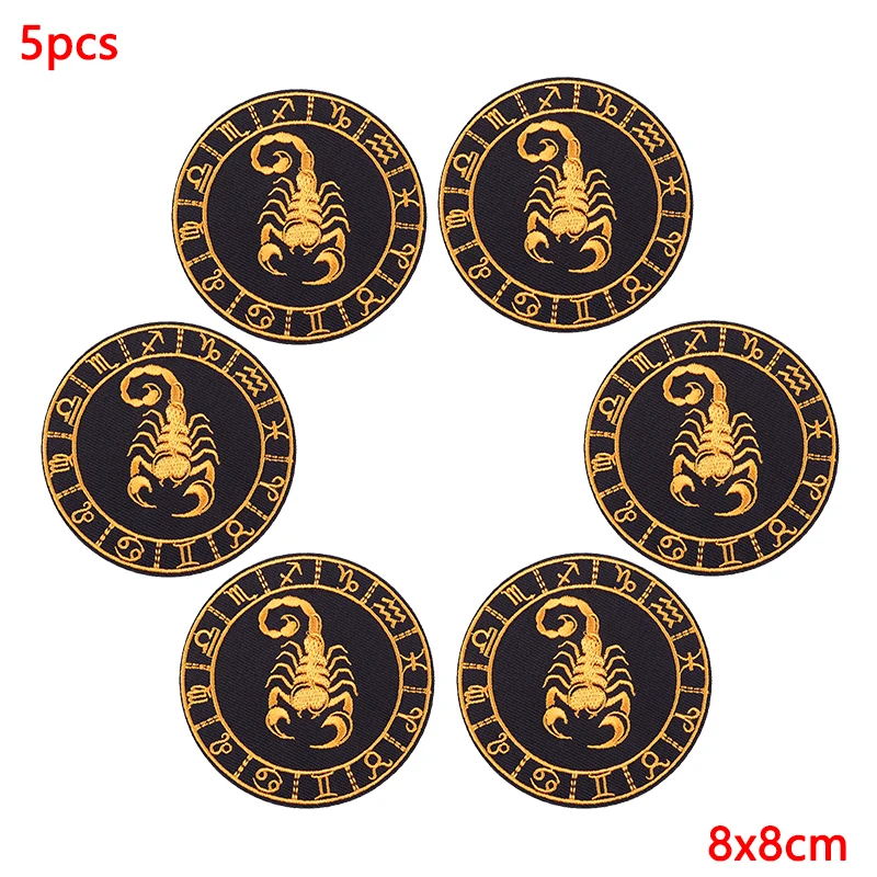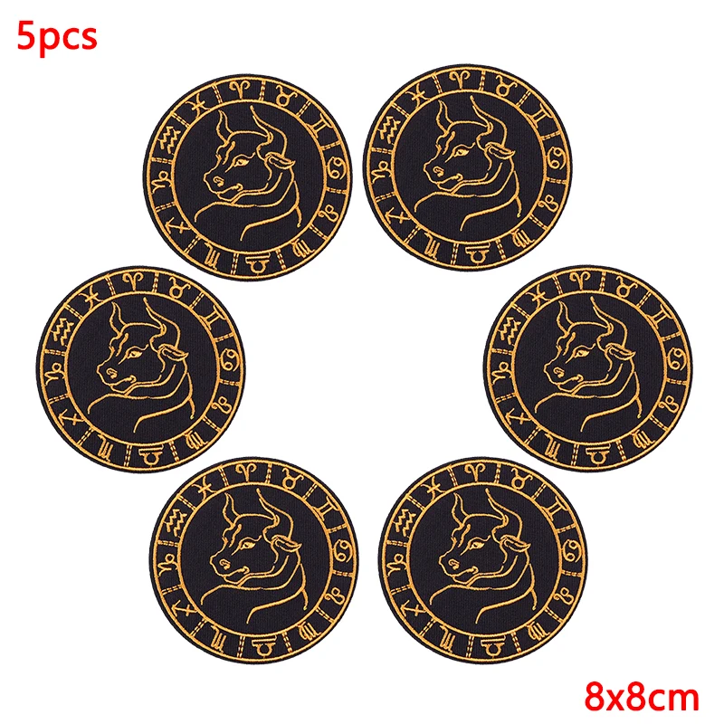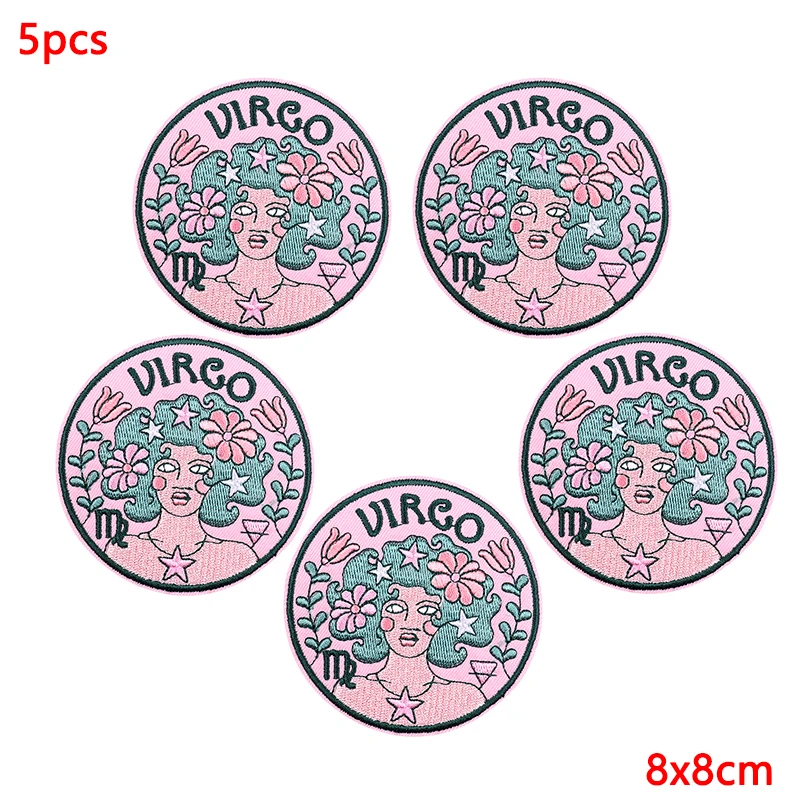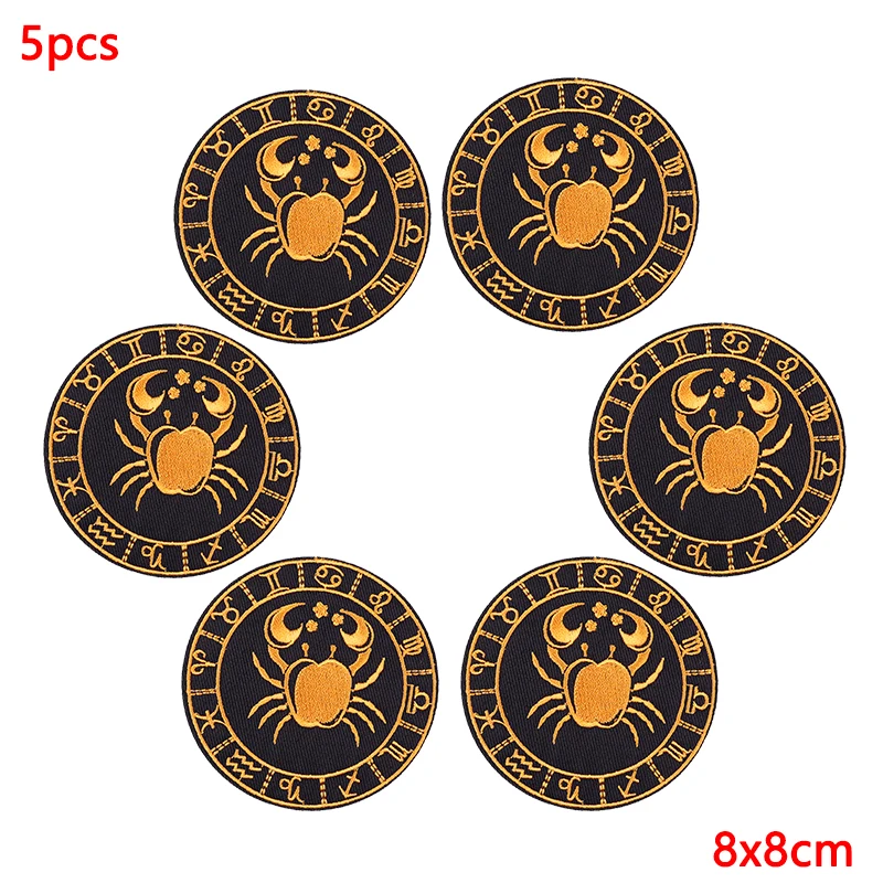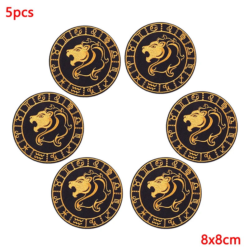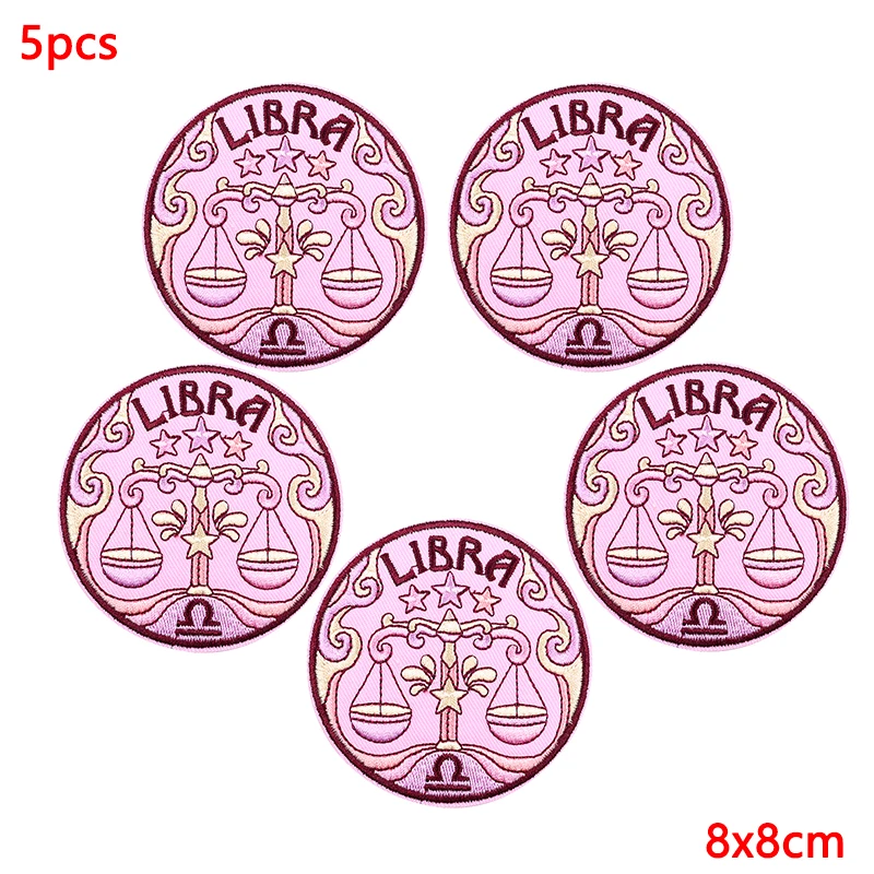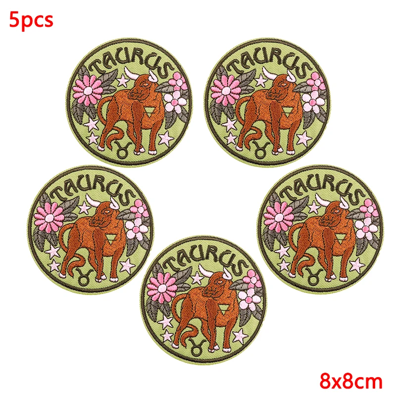Parche de doce signos del zodiaco, parches bordados de hierro para ropa, parches termoadhesivos en ropa, parche Fusible Diy, 5 unids/lote
