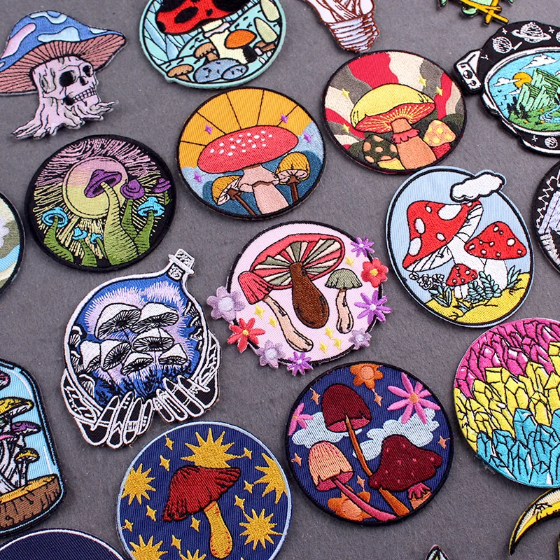 Parches de setas para pegatinas de ropa, parche para acampar, chaqueta, rayas, parche bordado, insignias de bucle de gancho DIY en accesorios de ropa
