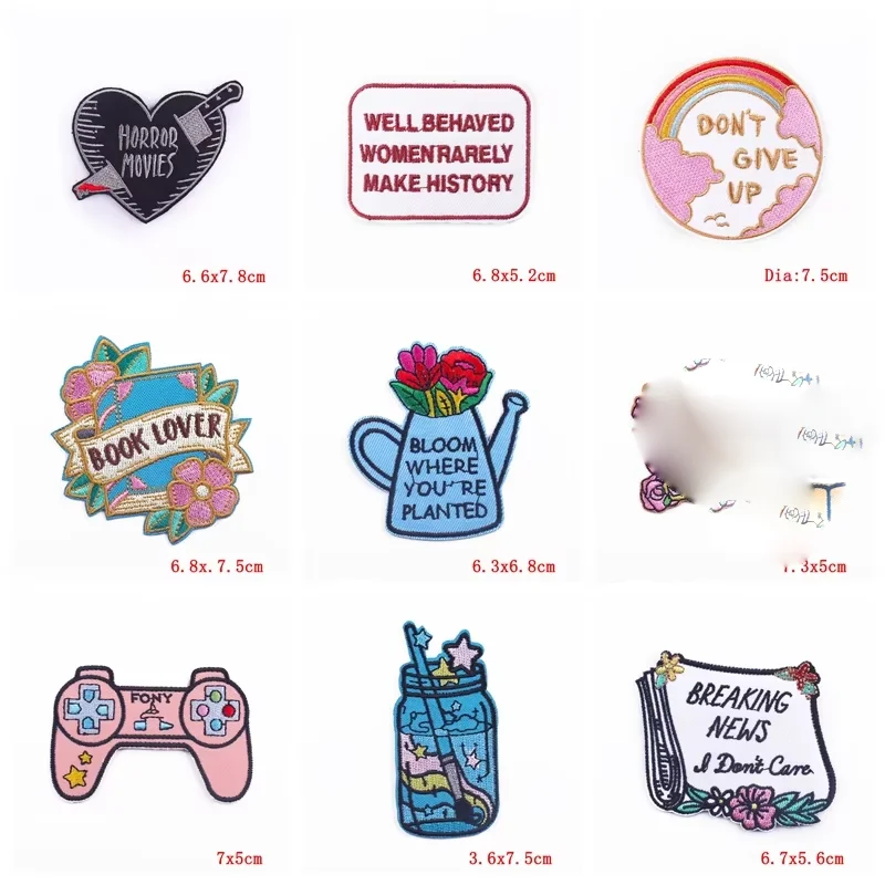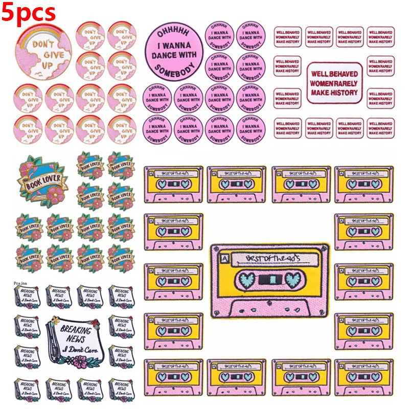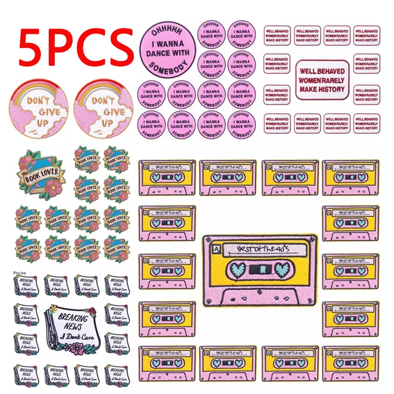 5 unids/lote de parches termoadhesivos de dibujos animados/letras para planchar para ropa, parche termoadhesivo para ropa, decoración de parches bordados con palabras positivas