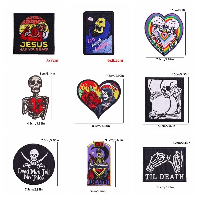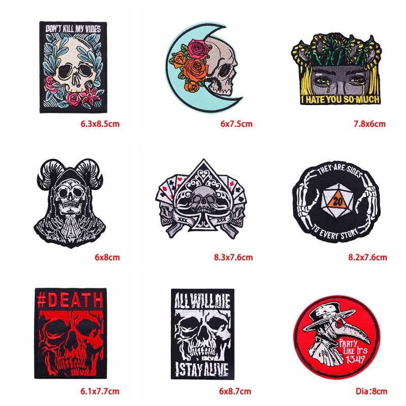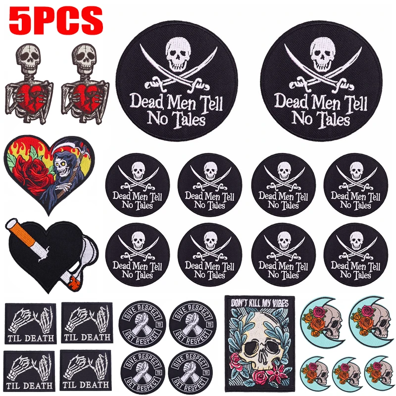 5 unids/lote Punk cráneo bordado insignias para coser parche hierro en parches para ropa parche de calavera de terror pegatinas bordadas parche Punk