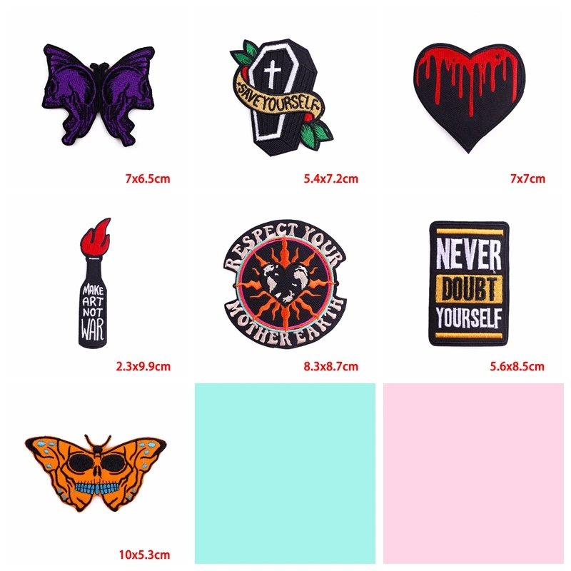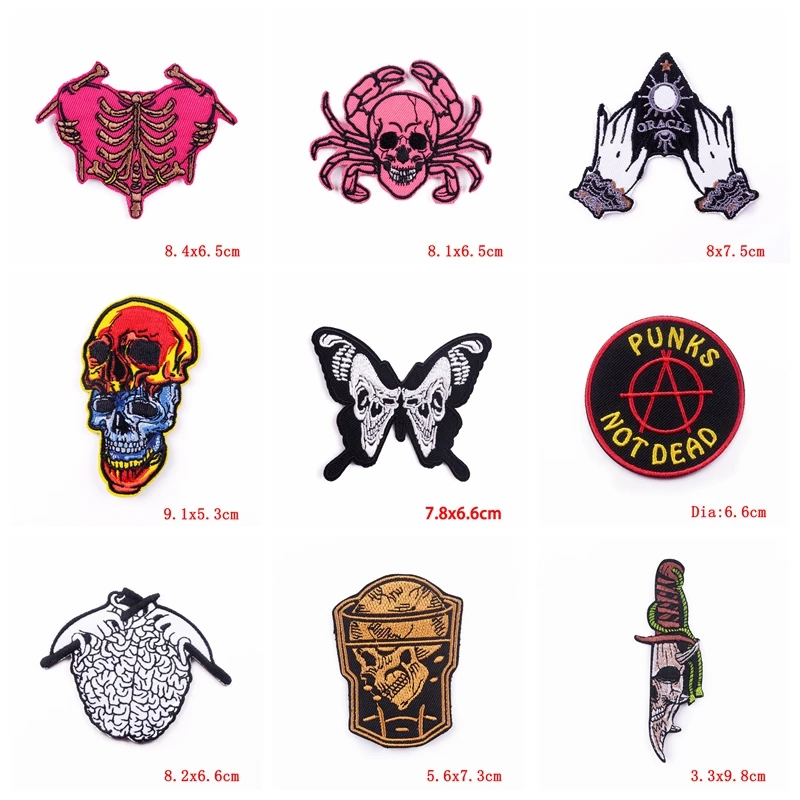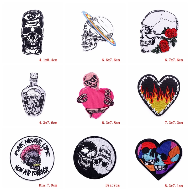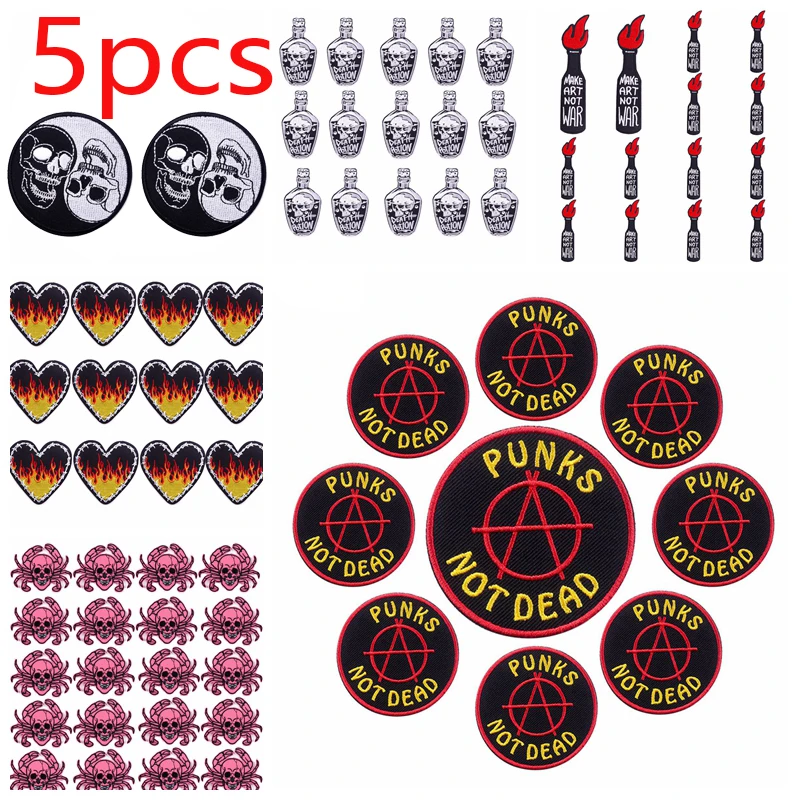 5 unids/lote Punk llama corazón hierro en parches bordados DIY parche de esqueleto de terror para ropa parches termoadhesivos en chaquetas