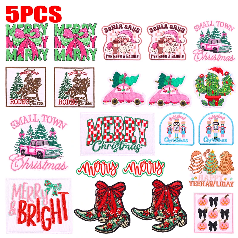 5 unids/lote Western Cowboy serie navideña parche chaquetas sombreros parches bordados DIY planchar en parches para ropa parche de dibujos animados